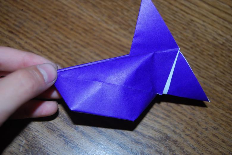 - Poche - plier avec une vallée, redresser le pli. Aplatissez de manière à obtenir les plis de part et d'autre du pli de la vallée.