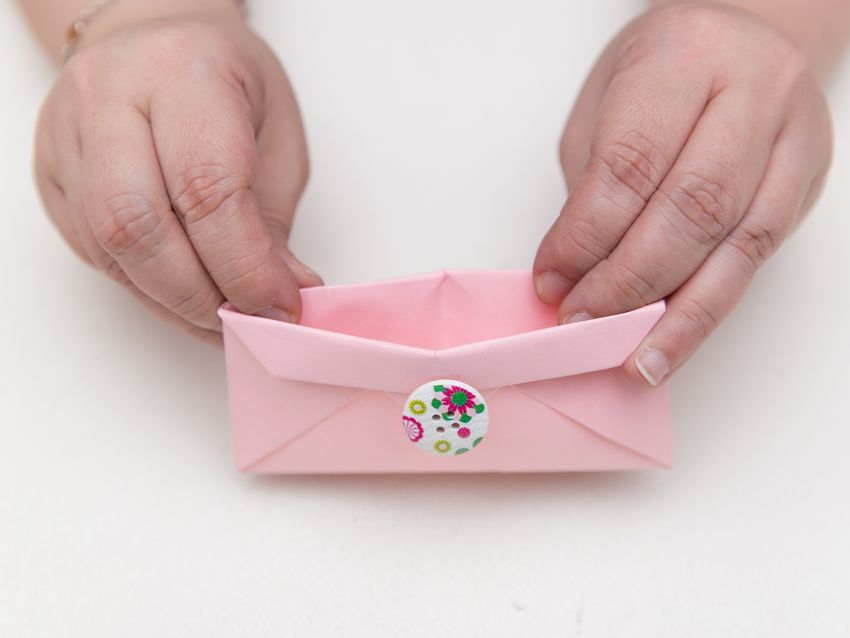 - Fermez le haut de la feuille avec une "serrure" de longs rectangles - le résultat du rognage. Votre porte-monnaie est prêt !