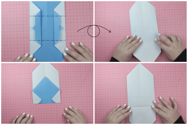 - Dépliez la mise en page. Pliez les coins vers le milieu du carré.