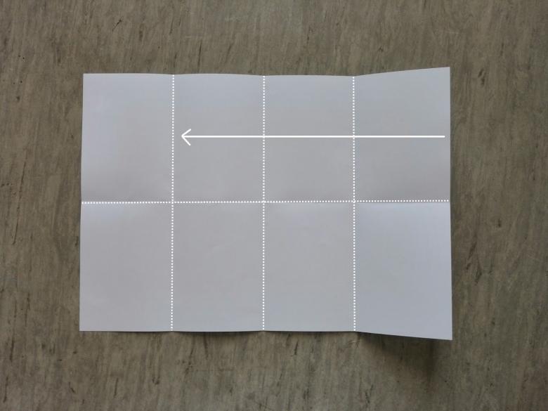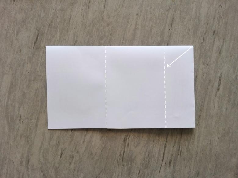 - Placez la feuille devant vous de manière à ce que le côté long soit horizontal, et divisez-la visuellement en trois parties de taille égale.