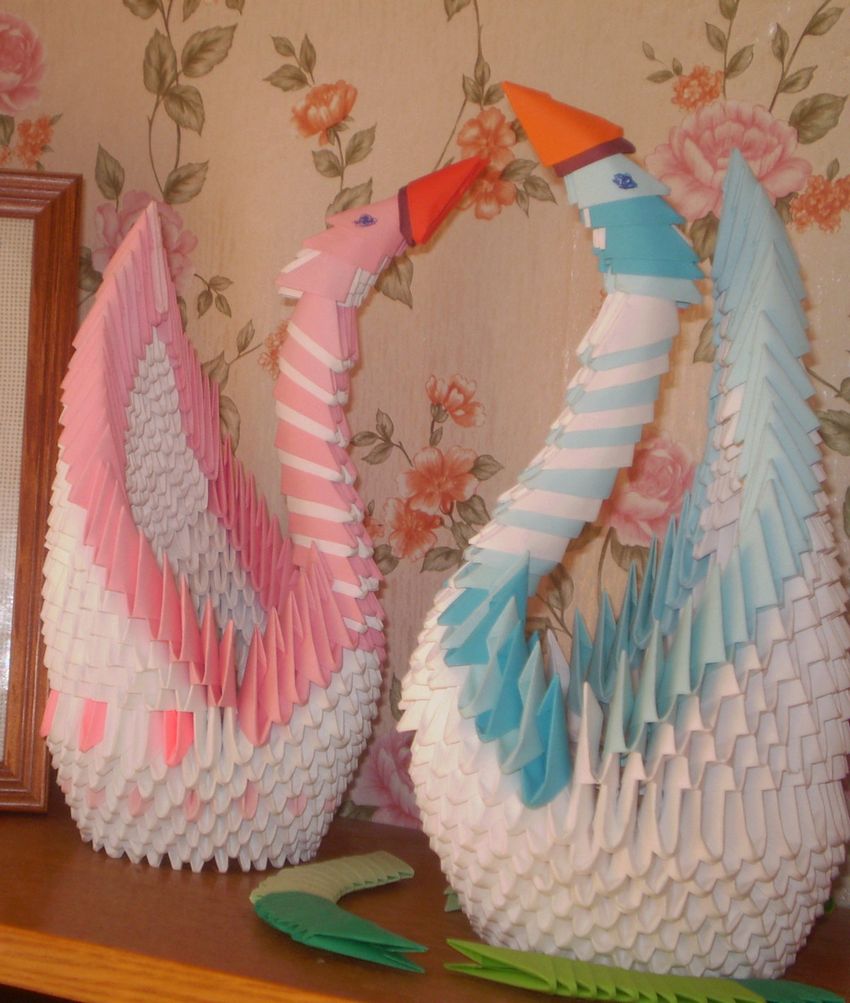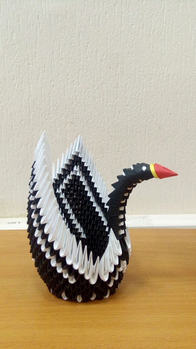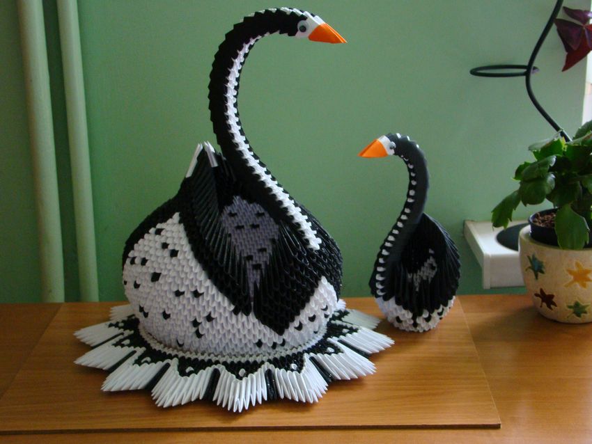 Si tu veux obtenir un cygne plus coloré, alors fais un module de papier coloré. Les modèles en noir et blanc sont également très intéressants.