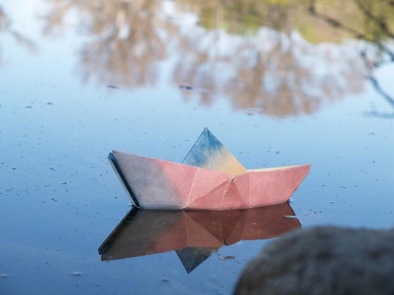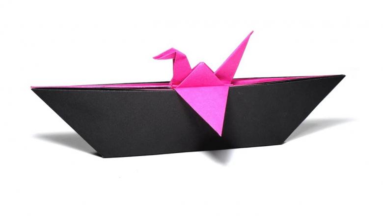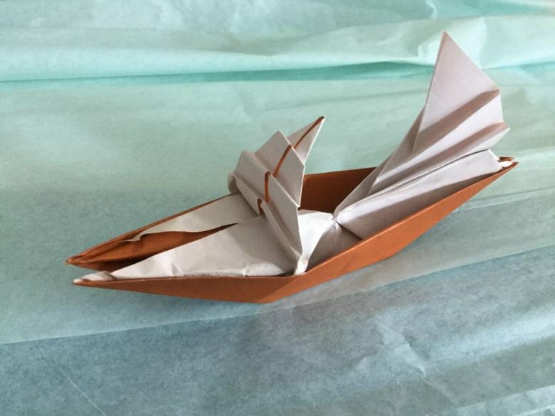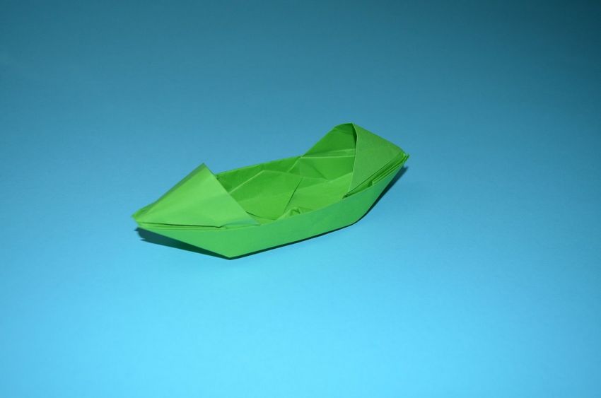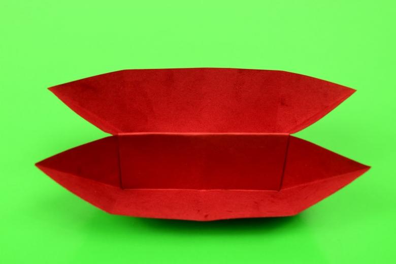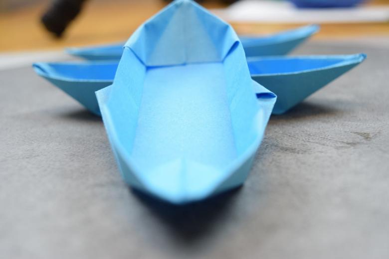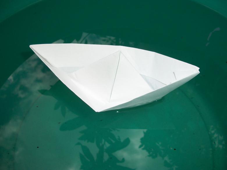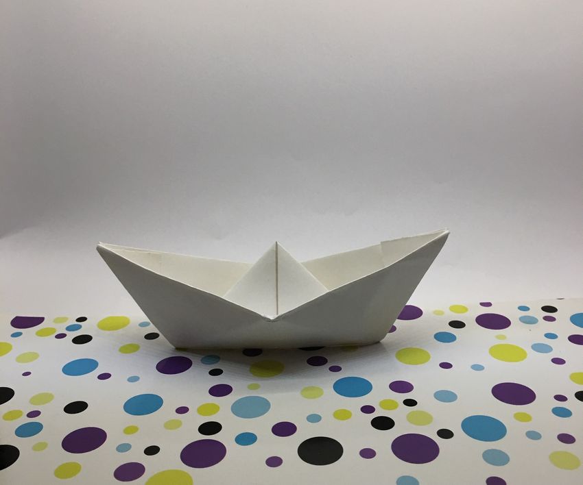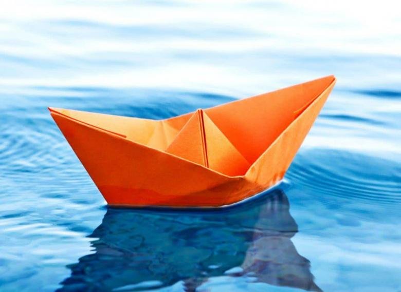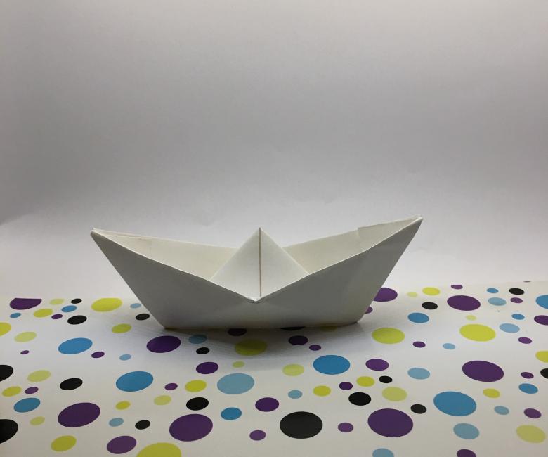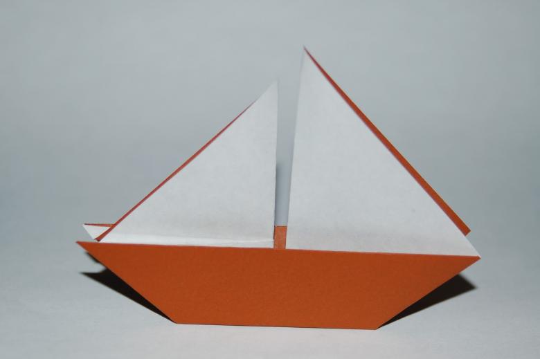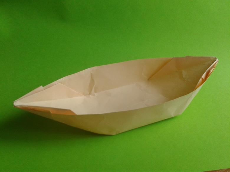 L'origami "bateau plat" est intéressant car on peut y placer de petits jouets et les envoyer en voyage en pleine mer. Une telle construction est facile à maintenir à la surface de l'eau. Algorithme d'action :