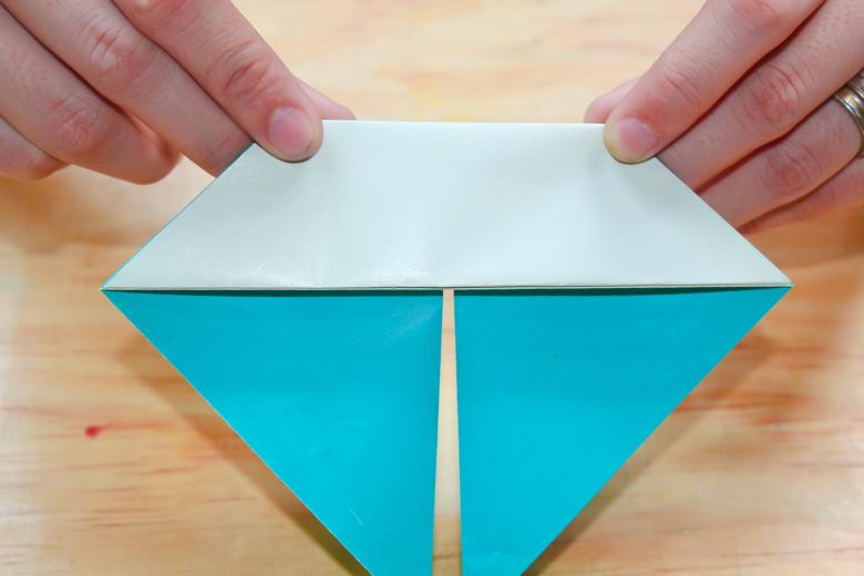 - Placez la feuille de manière à ce que le bord plié soit face à vous. Pliez les coins en les éloignant de vous.