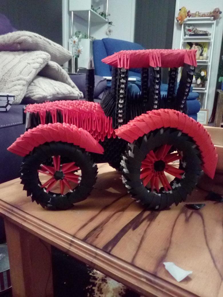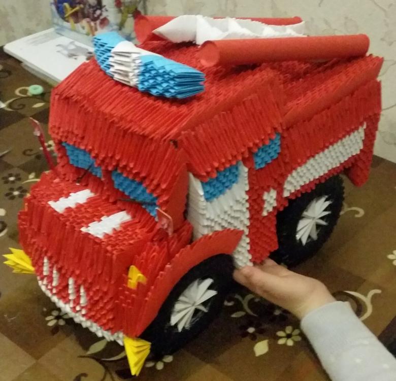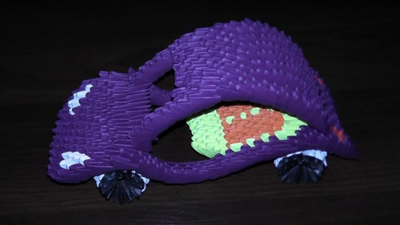 D'ailleurs, à partir de tels modules, on peut assembler des voitures, des camions et des modèles de course. Dans la technique de l'origami modulaire peut être plié en général est absolument n'importe quelle forme volumétrique.modulaire modélisation fournit la place pour l'imagination. La maquette d'une voiture peut être réalisée entière ou creuse à l'intérieur. Dans le second cas, il est même possible de placer à l'intérieur les embarcations du conducteur et des passagers. Il suffit de penser à une structure d'ouverture pour le toit ou les portes de la voiture en papier.
