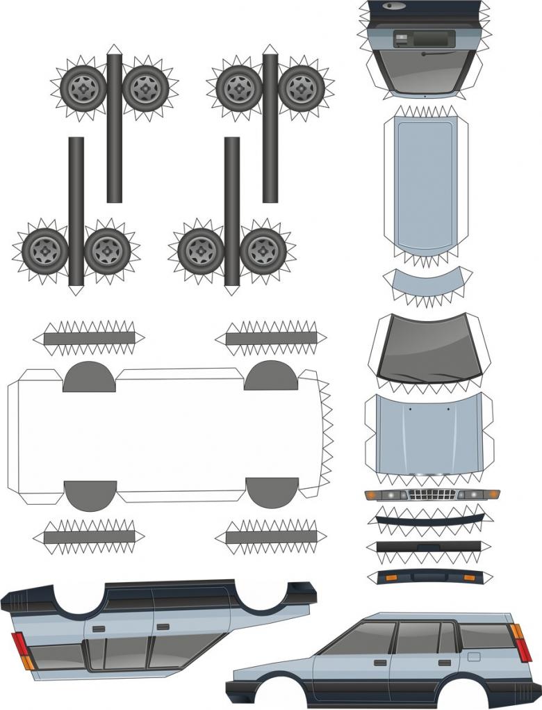 En général, l'assemblage de modèles de voitures selon cette technique est très similaire à la façon dont on assemblait autrefois à l'école une figure tridimensionnelle à partir d'un cube roulé. Les architectes utilisent la même technique pour créer une maquette en papier du futur bâtiment. Apparemment, c'est de là qu'est venue cette façon de faire du mannequinat.