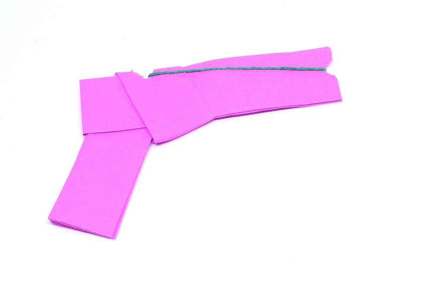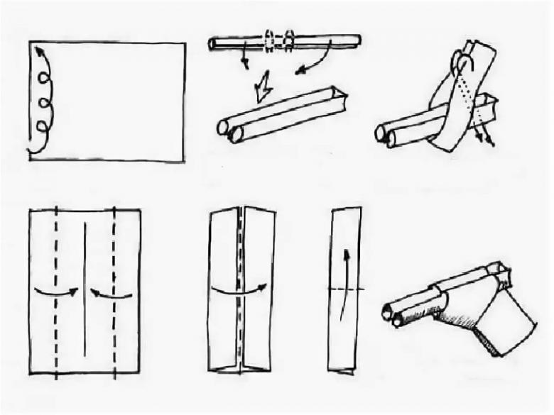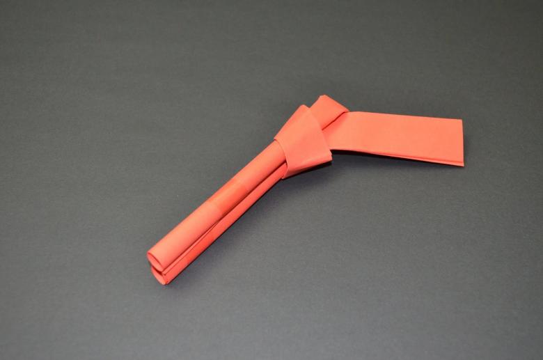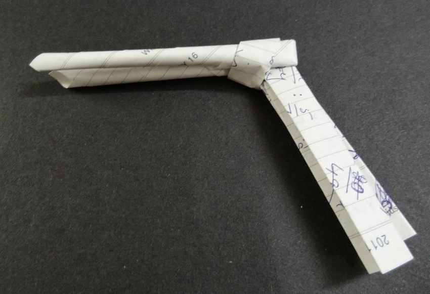 - Dépliez la pièce. Pliez vers le milieu du bord. Mais un écart égal est maintenu entre le point de marquage et le milieu de la pièce. La poignée de l'arme est prête.