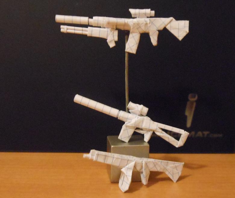 Armes en origami : description pas à pas pour les débutants de l'assemblage de différents types d'armes.