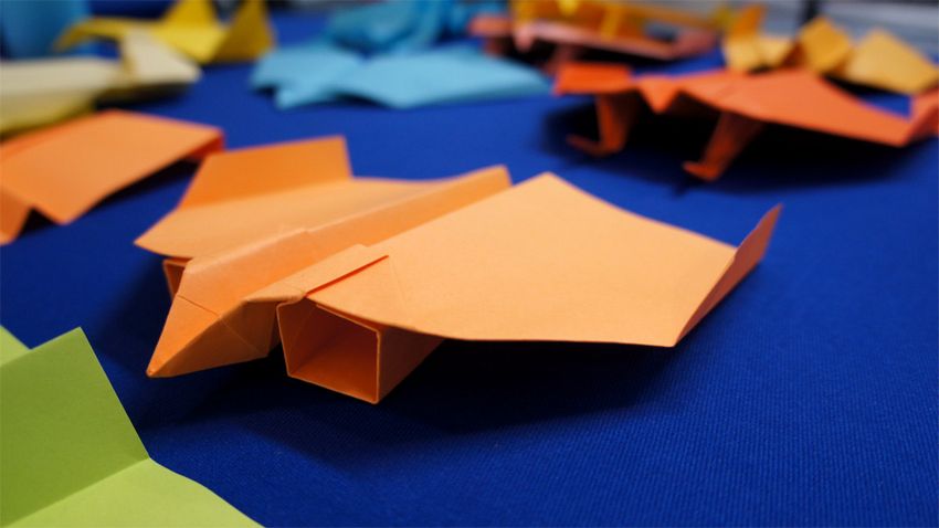 Pour réaliser un avion en origami simple qui vole loin et bien, vous aurez besoin d'une feuille de papier de bureau, de dessin, de cahier ou de papier journal. Un tel artisanat est créé assez rapidement. Et il conviendra de réaliser une série d'expériences avec des textures et des tailles différentes.