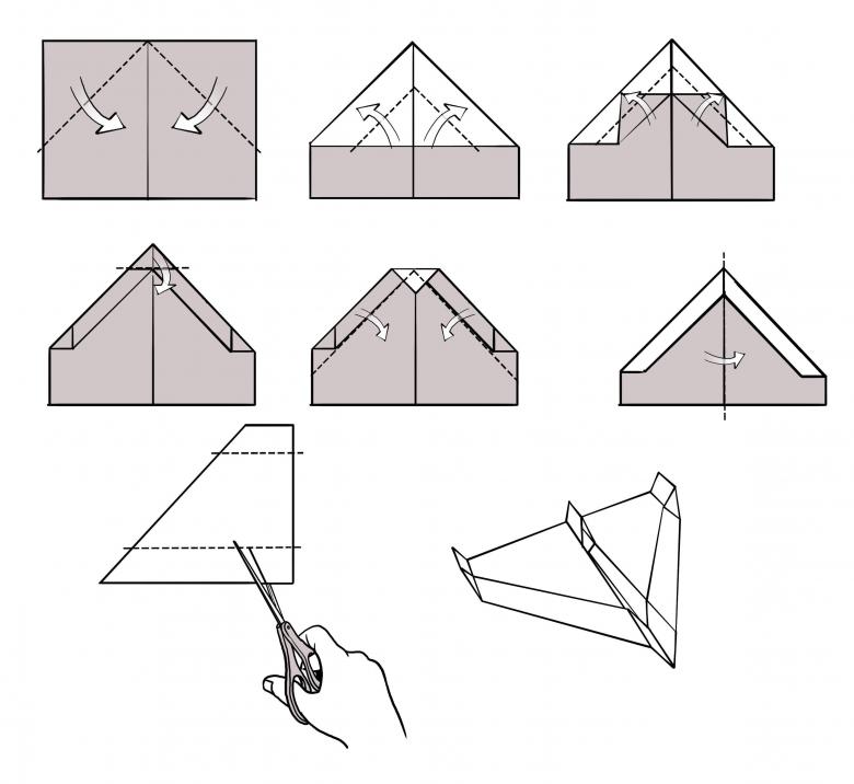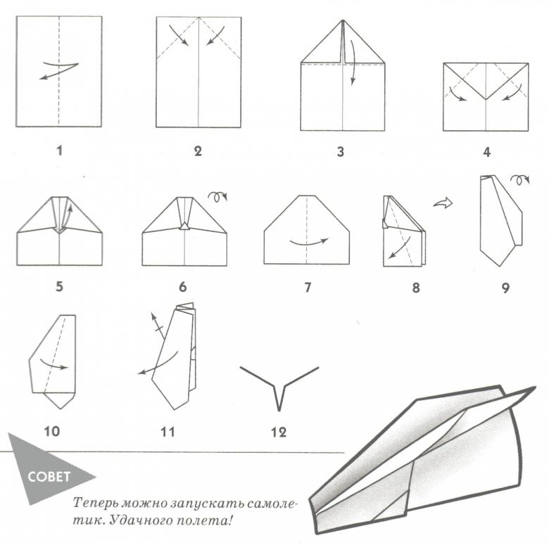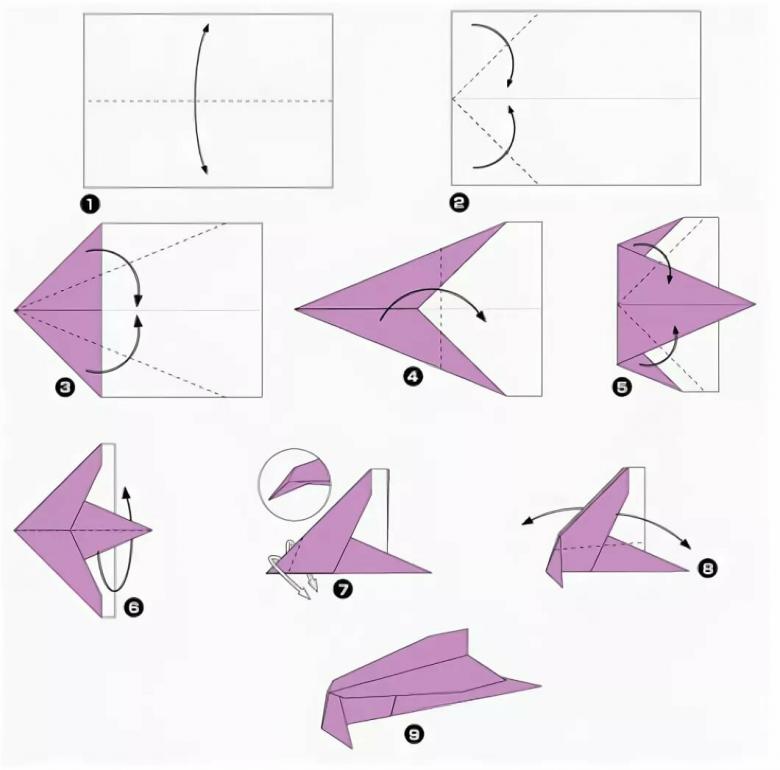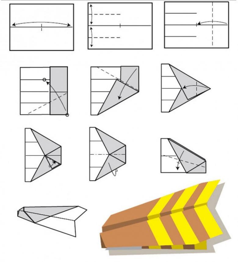 Comment faire un avion d'origami en papier qui vole loin - schémas et instructions pas à pas, photos du travail.