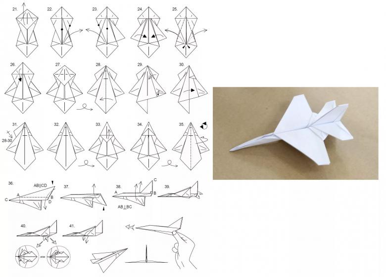 La principale différence avec ce modèle est la conception longue et complexe. Mais il est beaucoup plus spectaculaire que de simples avions de ligne. Pour plier vous-même un avion comme celui-ci, vous devez :