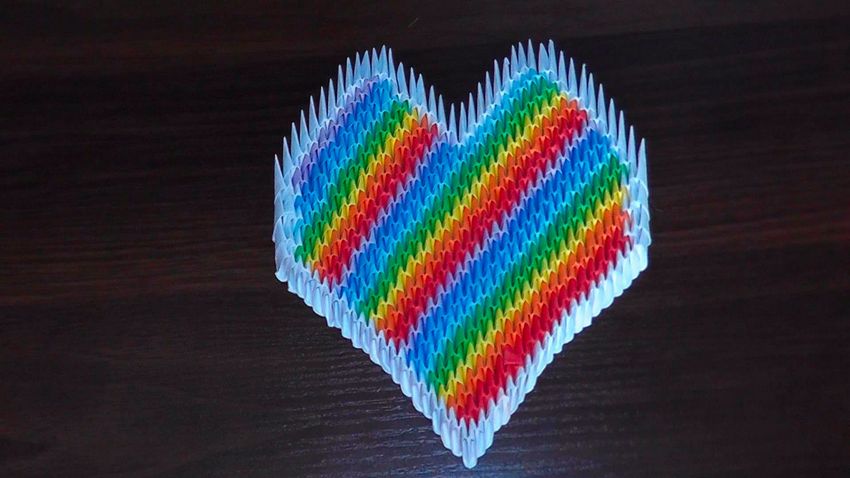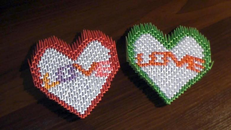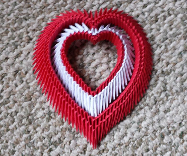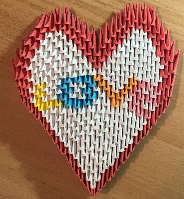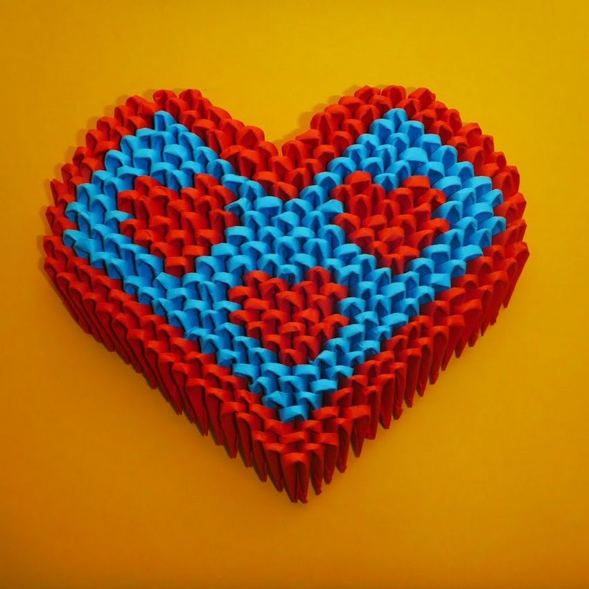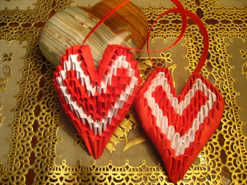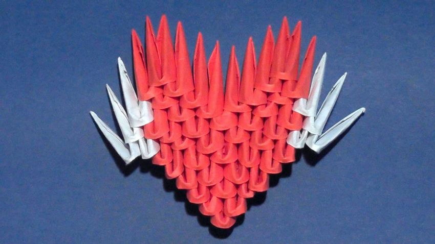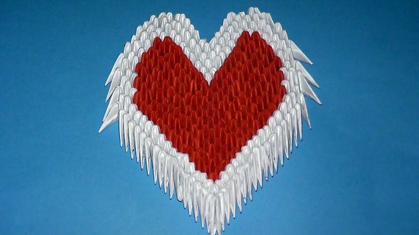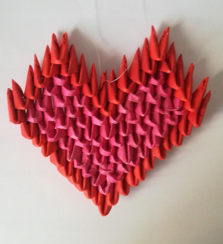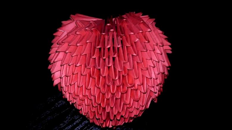 Une fois passée la première étape d'apprentissage à partir de l'exemple le plus simple d'un "cœur", vous pouvez passer à la création d'un cœur tridimensionnel en papier en utilisant la technique de l'origami.