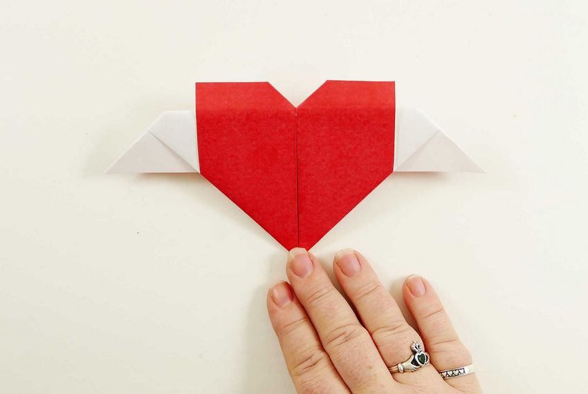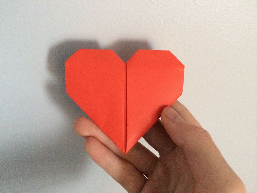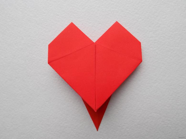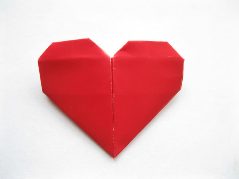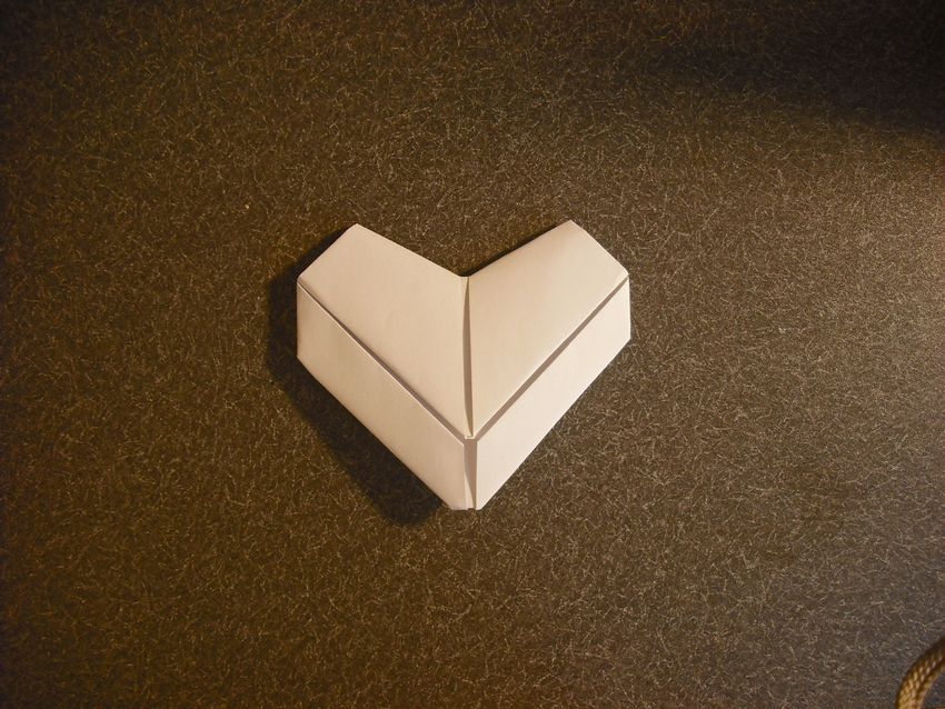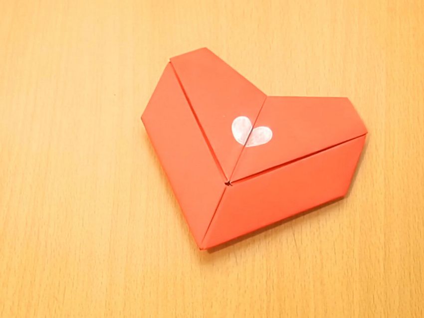 - Dans la dernière étape, vous pouvez faire un cœur arrondi, en pliant les coins sur les côtés et le haut de la figure.
