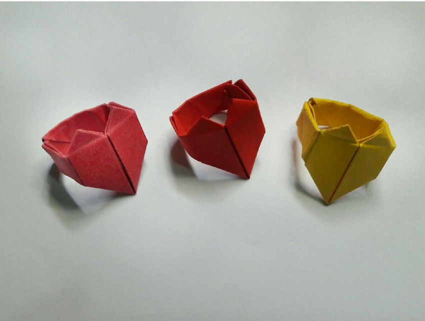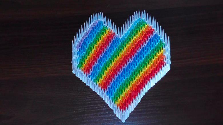 - Pour commencer, il est nécessaire de préparer un grand nombre de modules de papier. S'il s'agit de la première tentative de création d'un cœur, il est suggéré de commencer avec 80 triangles et de suivre clairement les instructions.