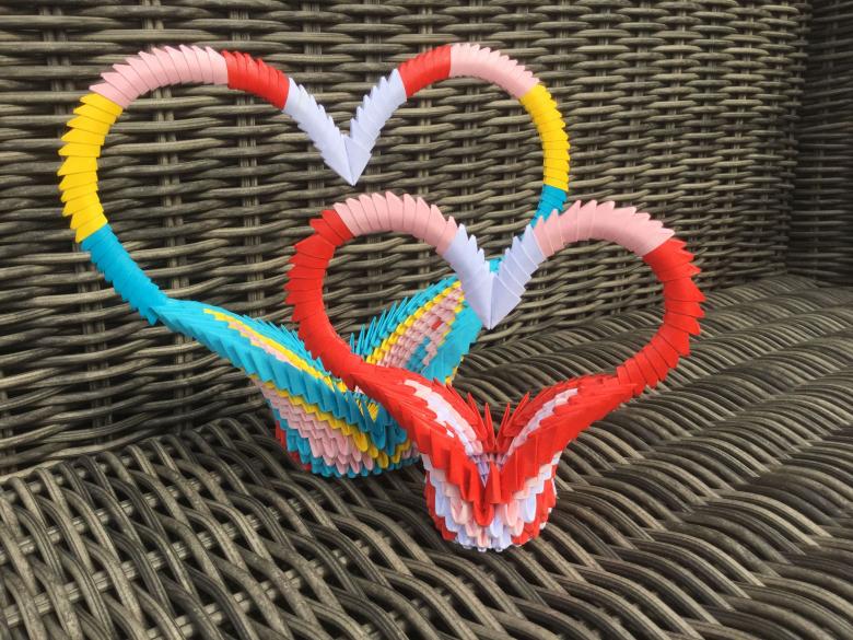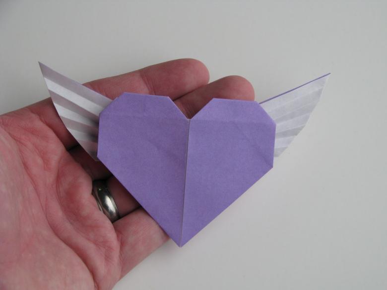 Le cœur peut servir de complément mignon au cadeau principal du type de cartes ou de la Saint-Valentin, souvent la technique du cœur sur le principe de l'utilisation de l'origami sous la forme de signets pour les livres, les gens font des boîtes entières ou des compositions individuelles en vrac, etc.