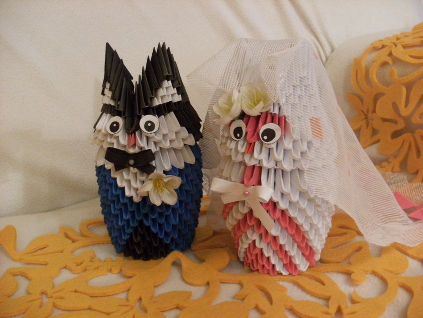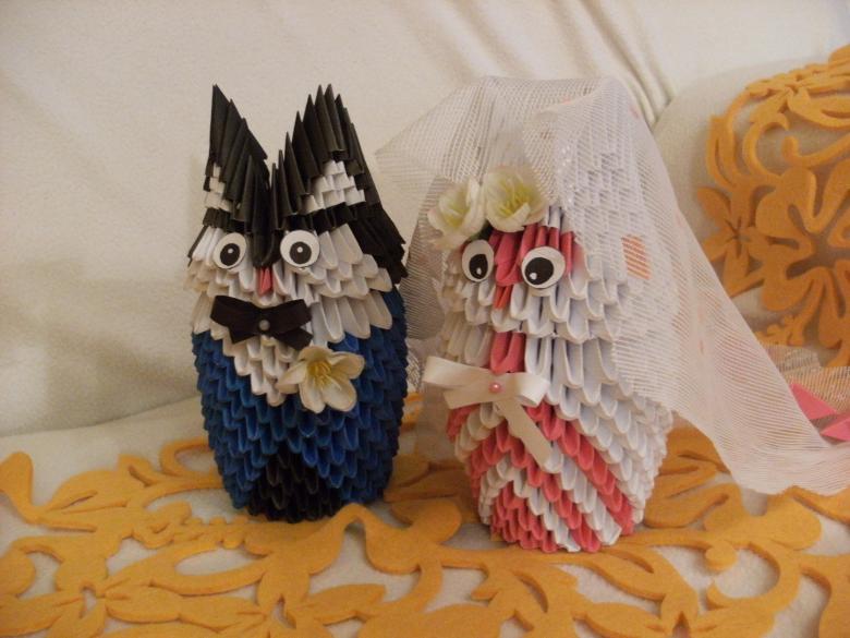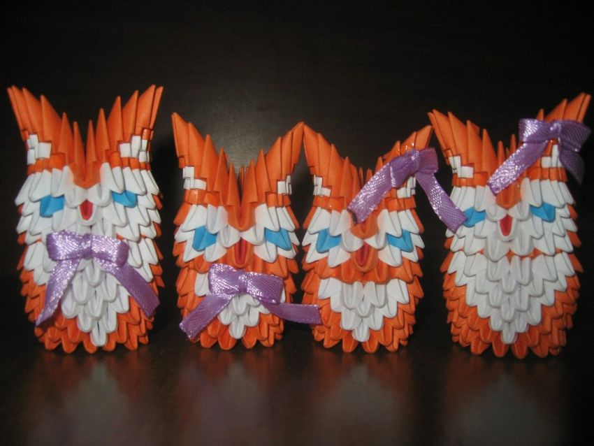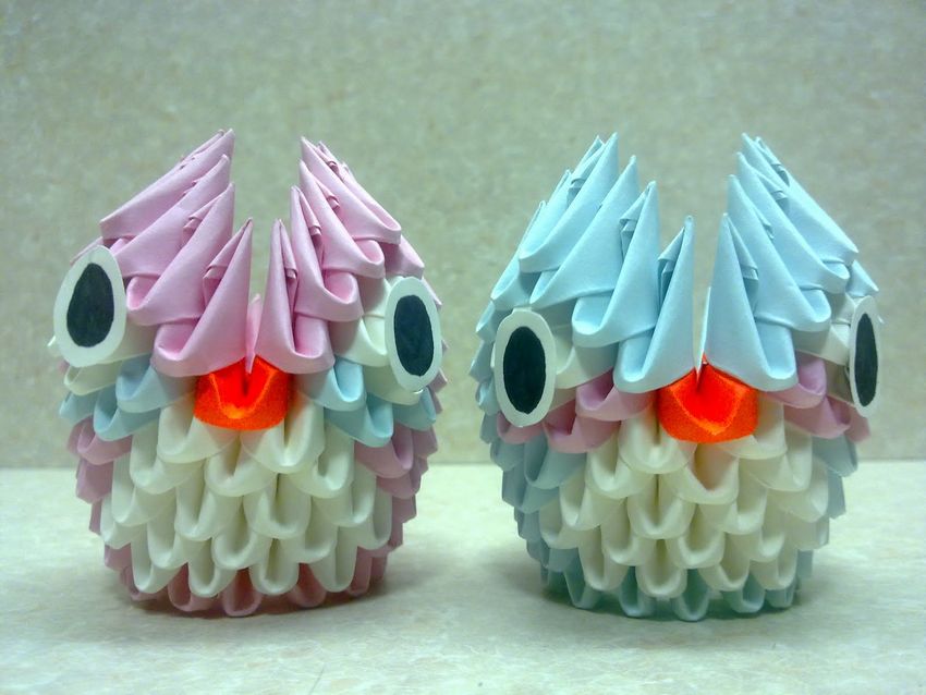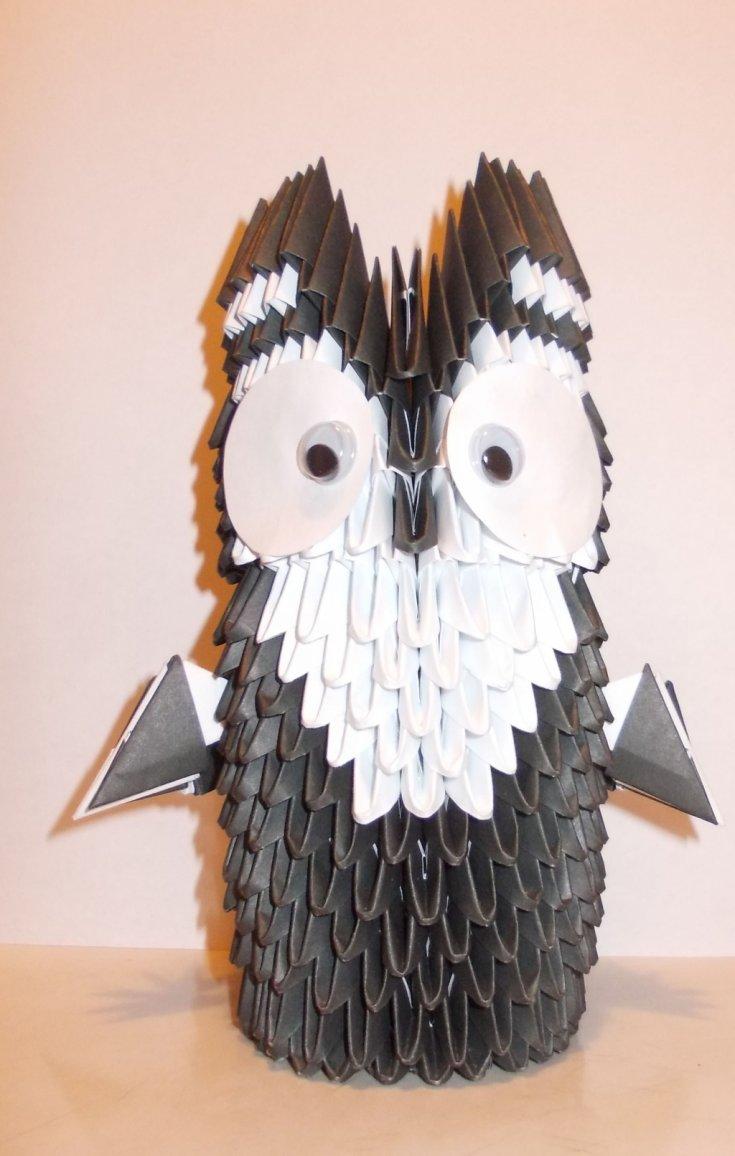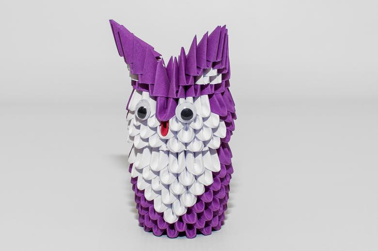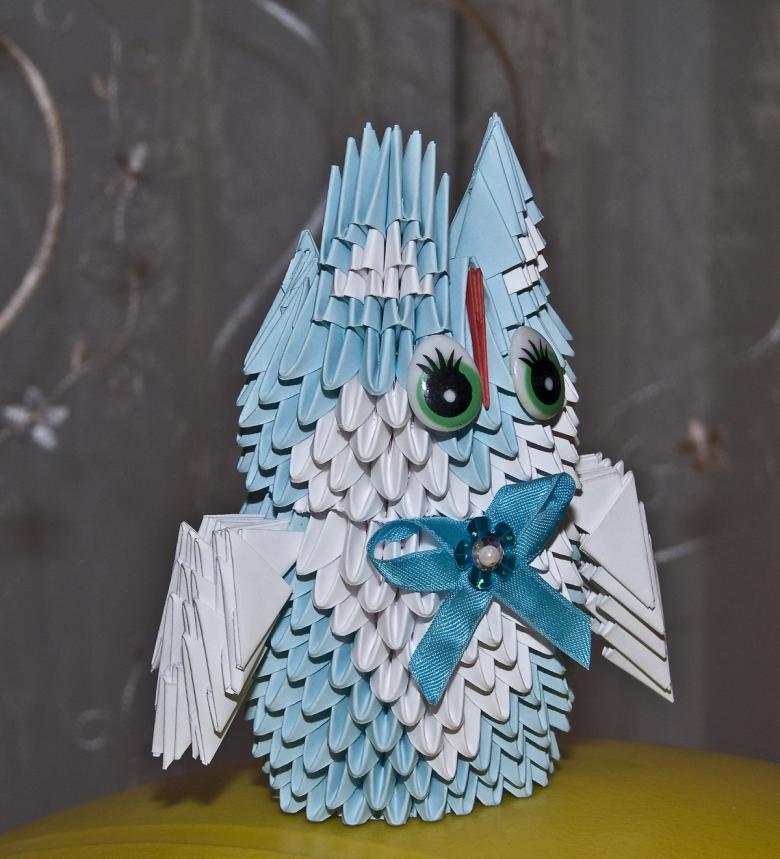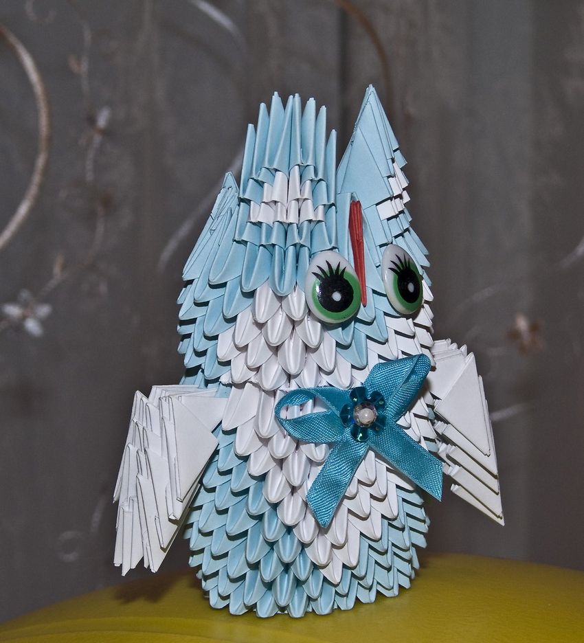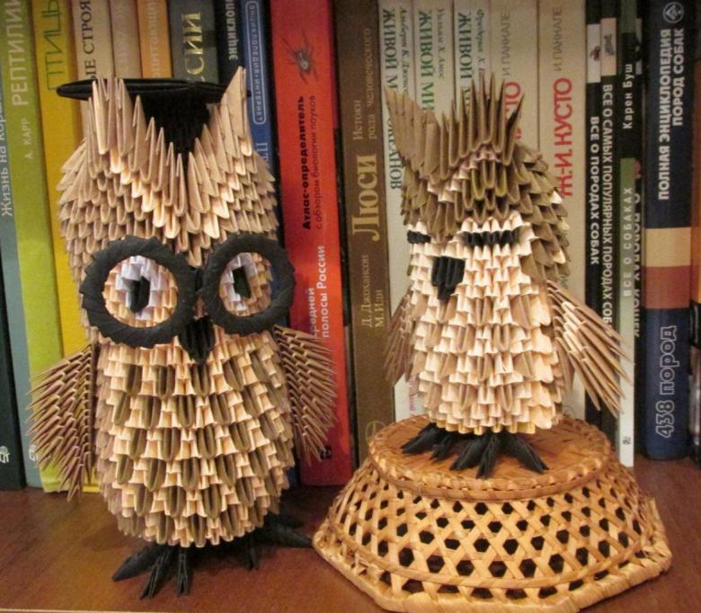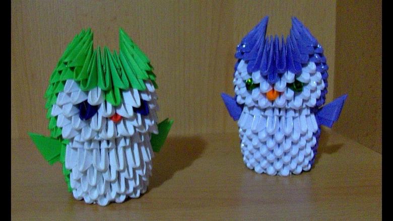 La chouette en origami finie des modules peut être utilisée comme un objet de décoration distinct ou être dotée d'un objectif fonctionnel. Parce que l'intérieur de l'engin est creux, si vous ne fermez pas les modules du haut de la tête, l'intérieur de l'engin peut être mis crayons et stylos, et si vous exécutez les modules du haut de la tête-couvercle, vous avez une boîte pour les choses légères.