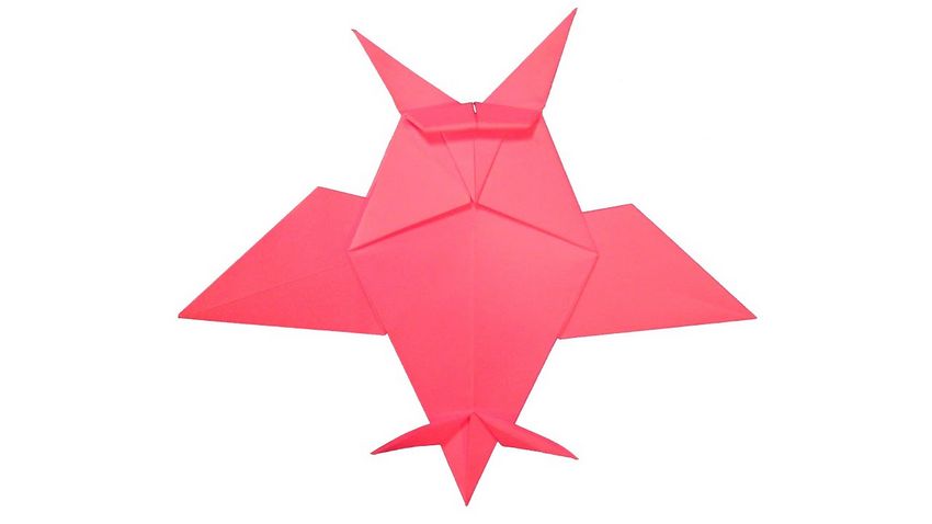 - Plie deux fois la moitié inférieure de la feuille, de manière à ce qu'elle ressemble à un bec.