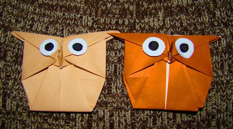 Les chouettes simples sont dérivées de schémas standard ou se composent de modules (petites pièces qui s'assemblent comme un puzzle). Sur Internet, vous pouvez trouver de nombreuses descriptions simples de hiboux en origami. L'un des schémas les plus simples est présenté ci-dessous. Suivez les instructions étape par étape et vous pourrez facilement fabriquer un hibou pour votre bébé.