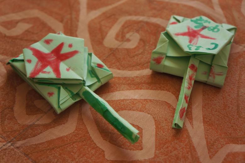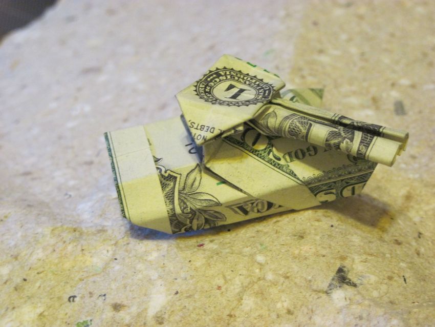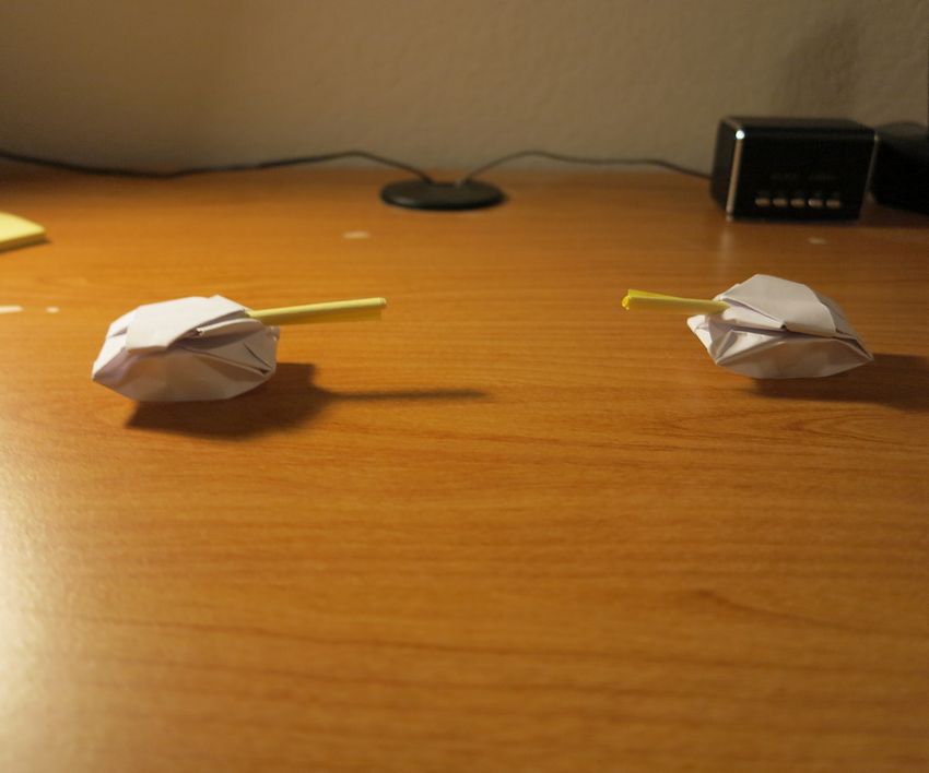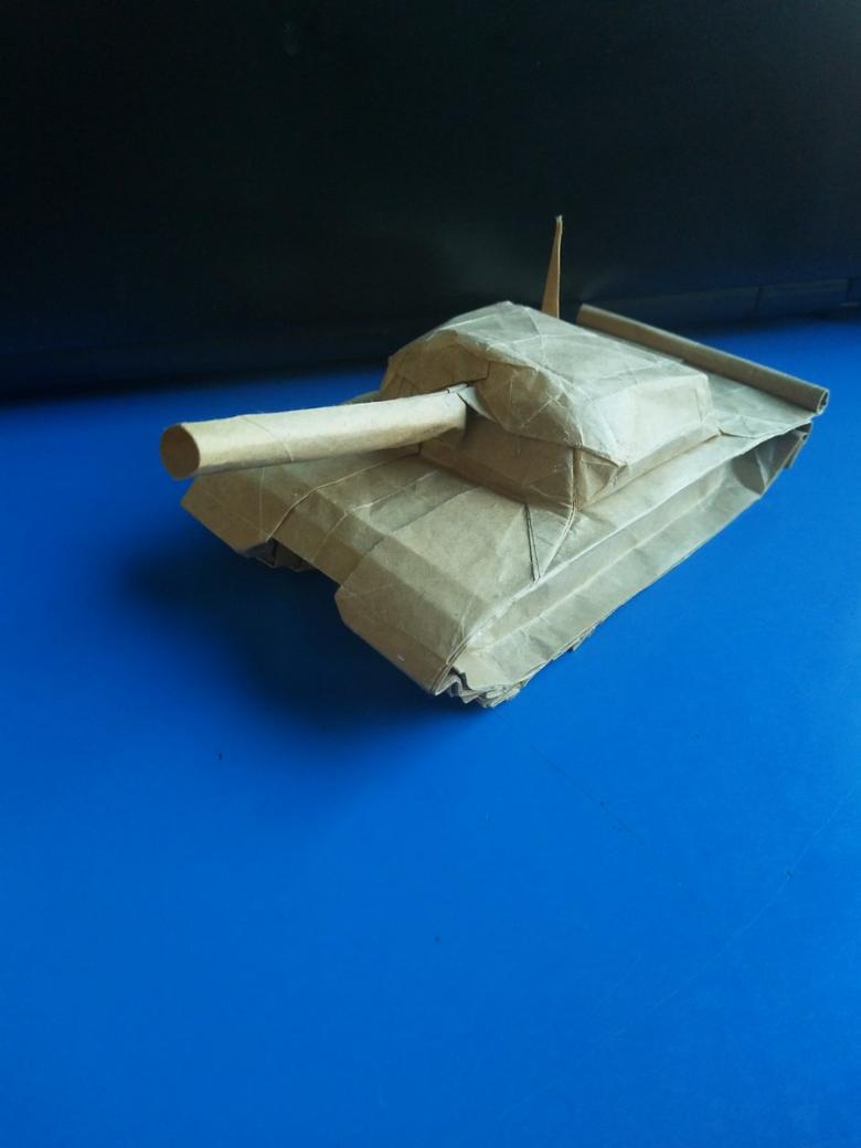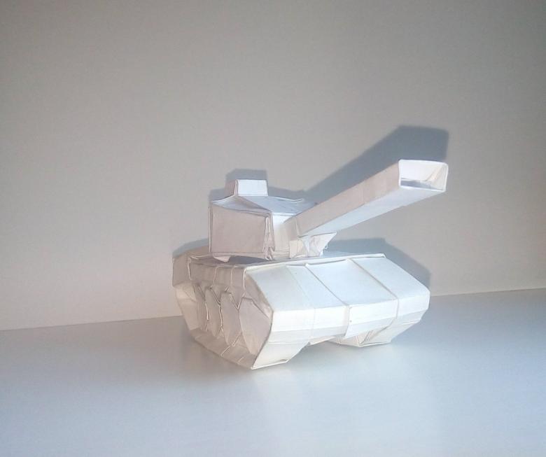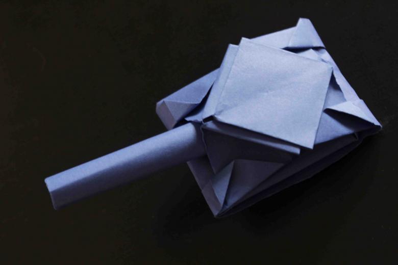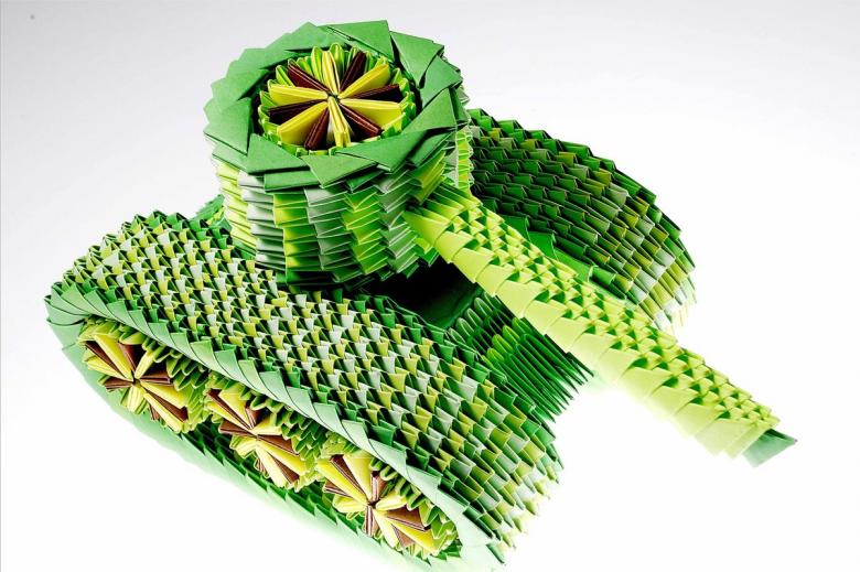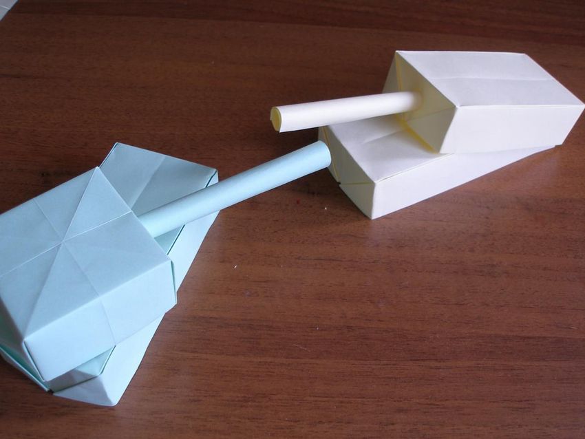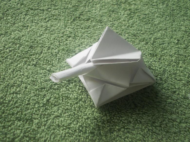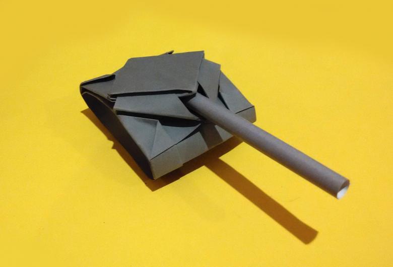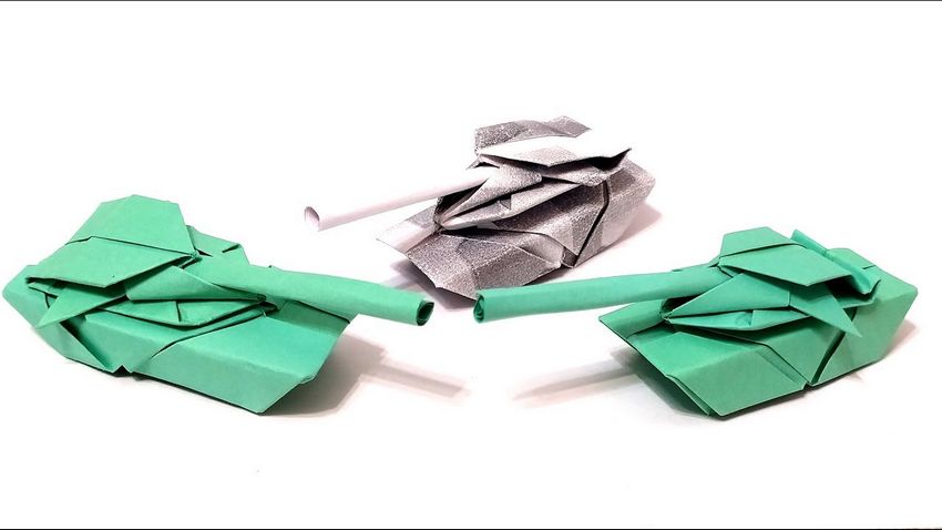 Pour qu'un char d'assaut en origami soit aussi proche que possible de la réalité, vous pouvez le fabriquer avec une tourelle rotative.