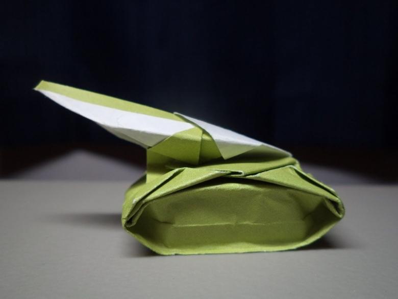 - Les triangles à la base du losange sont pliés au sommet. Il en résulte une poche dans laquelle la tourelle est montée.