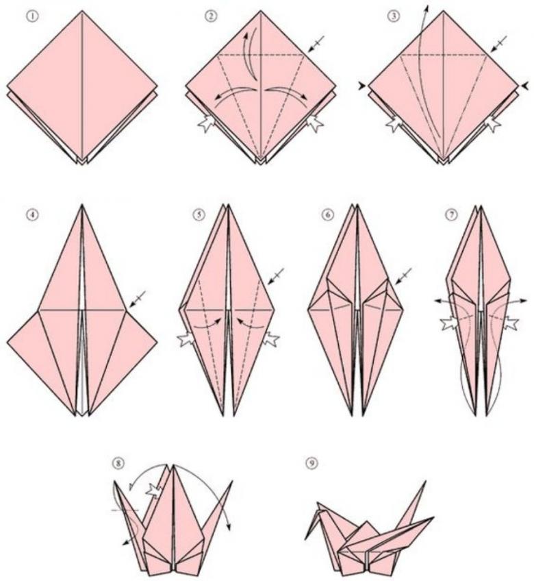 La figurine de la grue était considérée comme importante par les Japonais. Il y avait une croyance, dont l'essence est que les dix cents grues pliées de papier guérissent de toutes les maladies et peuvent réaliser toute ambition. Au fil des ans, l'origami s'est répandu dans tous les pays de notre planète, gagnant une armée d'admirateurs.