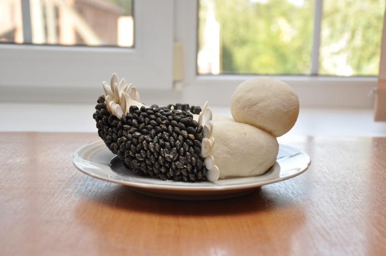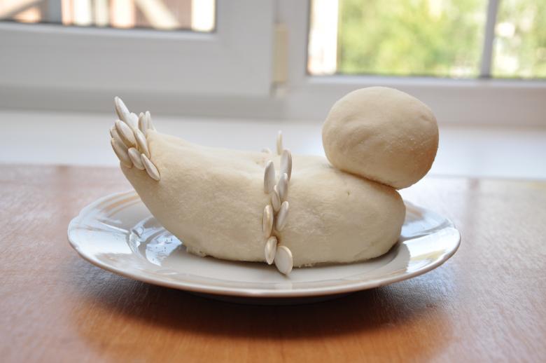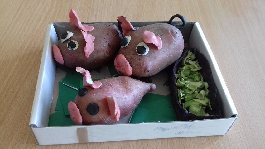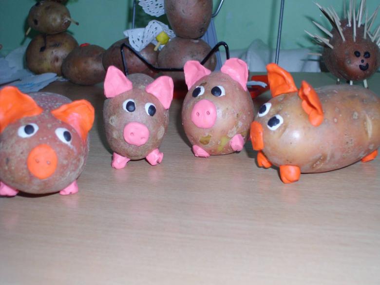 Choisissez un tubercule de la taille requise. D'un côté, le museau, les yeux, la bouche et les oreilles d'un porcelet sont décorés avec de la pâte à modeler. De l'autre côté, une queue torsadée est attachée. Personnage préféré de la série "Goodnight Babies !