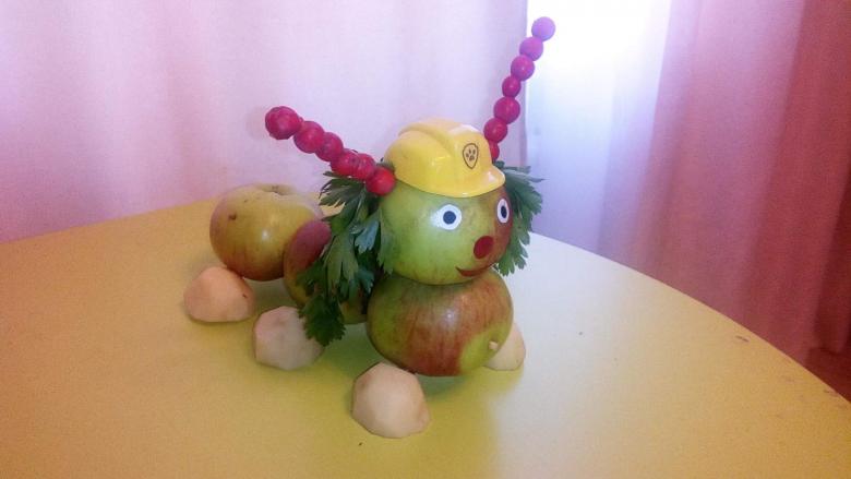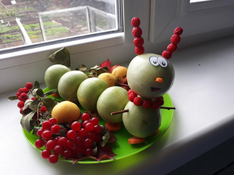 Les cadeaux d'automne permettent également de réaliser des objets artisanaux qui peuvent être consommés comme nourriture après un certain temps. À cet égard, faire des chenilles avec des pommes est une idée originale.