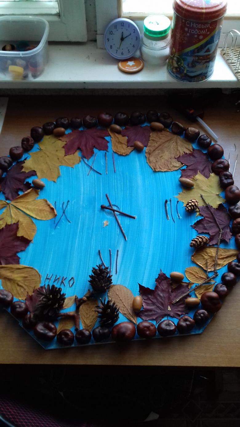 Tout le périmètre de l'horloge est décoré de châtaignes, de glands ou de haricots, selon ce que vous avez sous la main.