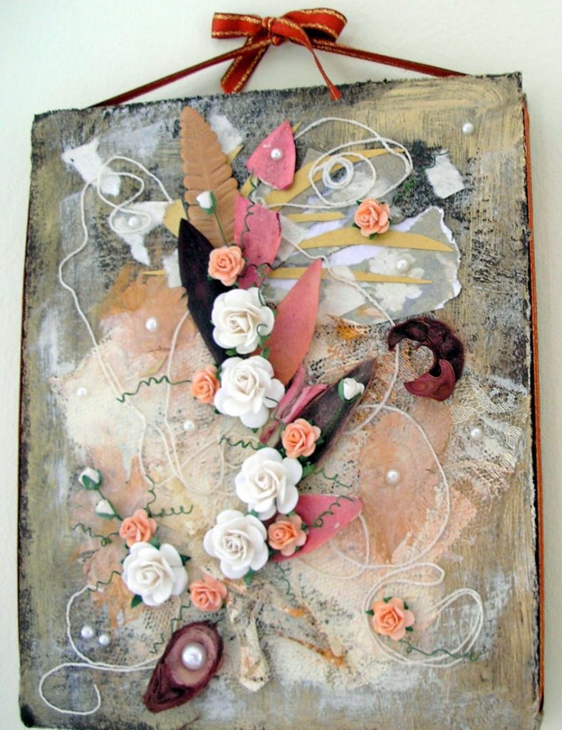 Les panneaux floraux réalisés selon cette technique sont très lumineux et originaux. Les rubans, l'organza, les perles et les strass dureront beaucoup plus longtemps que les vraies fleurs car, contrairement à ces dernières, les fleurs en ruban ne se fanent pas.