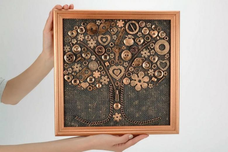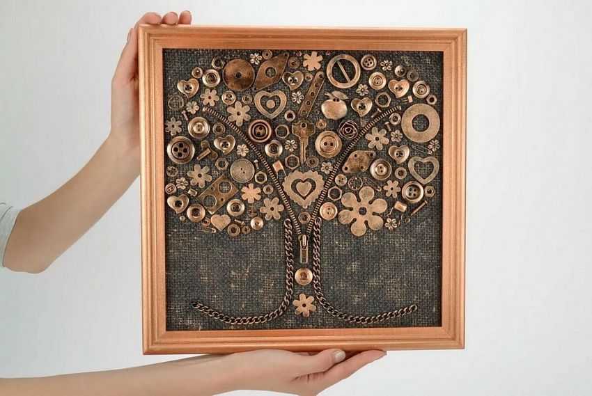 Il n'est pas nécessaire de l'acheter car il peut, et doit, être fabriqué à la main à partir de n'importe quoi. Ils peuvent être fabriqués à partir de divers matériaux : des disques de coton et des coquillages aux panneaux 3D en plâtre et aux produits en pierre naturelle. Il est très courant aujourd'hui que toute la famille travaille sur un tableau.