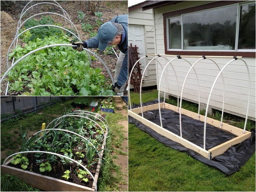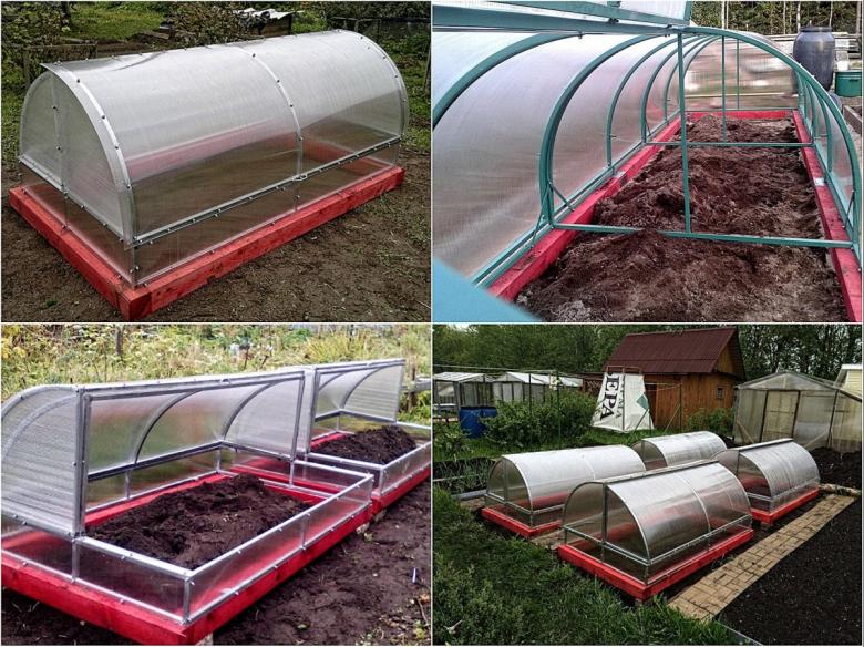 Le plastique et le polypropylène sont des matériaux légers et durables, mais ils ne peuvent pas supporter de lourdes charges, ils s'affaissent et se fissurent. Les serres sont fabriquées dans différentes formes et tailles : arquées, unilatérales avec un couvercle à charnière, à pignon, de type "thermos", "boîte à pain", "papillon". Les conceptions peuvent être améliorées, en combinant des éléments, en utilisant des matériaux improvisés, de vieux meubles.