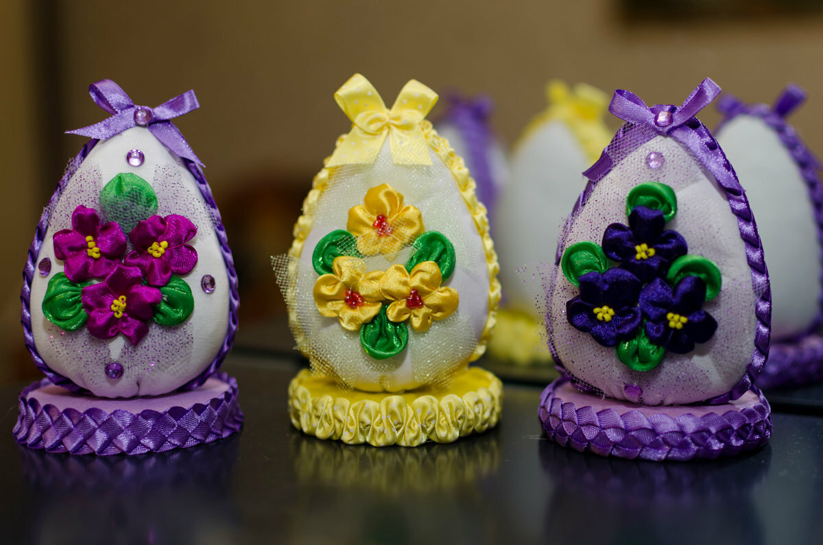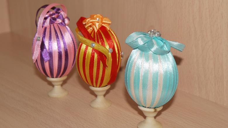 Les rubans de satin sont un excellent matériau pour l'artisanat. Vous aurez également besoin d'un jeu d'épingles anglaises (très petites), de ciseaux et d'une base en mousse de forme ovale. Instructions pour réaliser de vos propres mains un bricolage en forme d'œuf de Pâques :