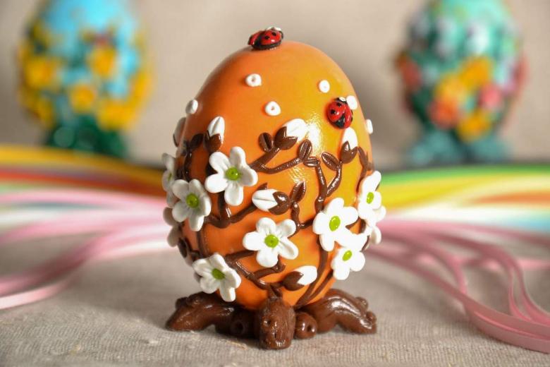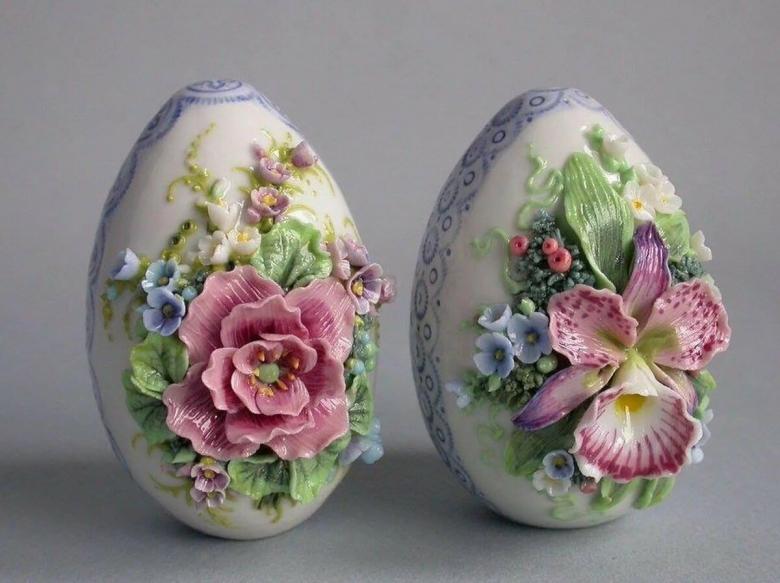 - Moulage de plastique. Aujourd'hui, des matériaux tels que la pâte à sel, la porcelaine froide, l'argile polymère sont populaires. L'élasticité unique de toutes ces bases permet non seulement de créer la forme ovale caractéristique de l'œuf, mais aussi de donner à la surface une sorte de relief.