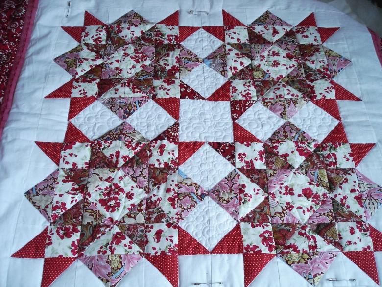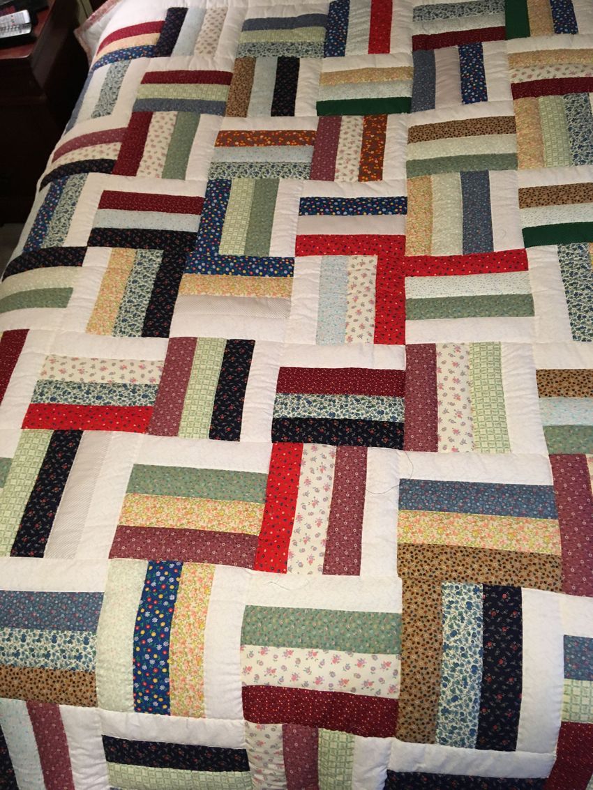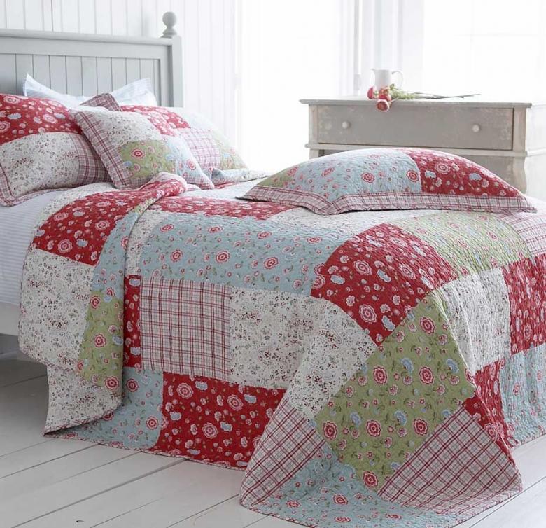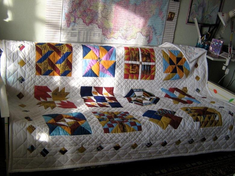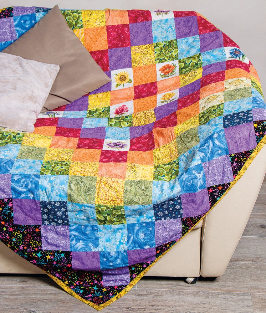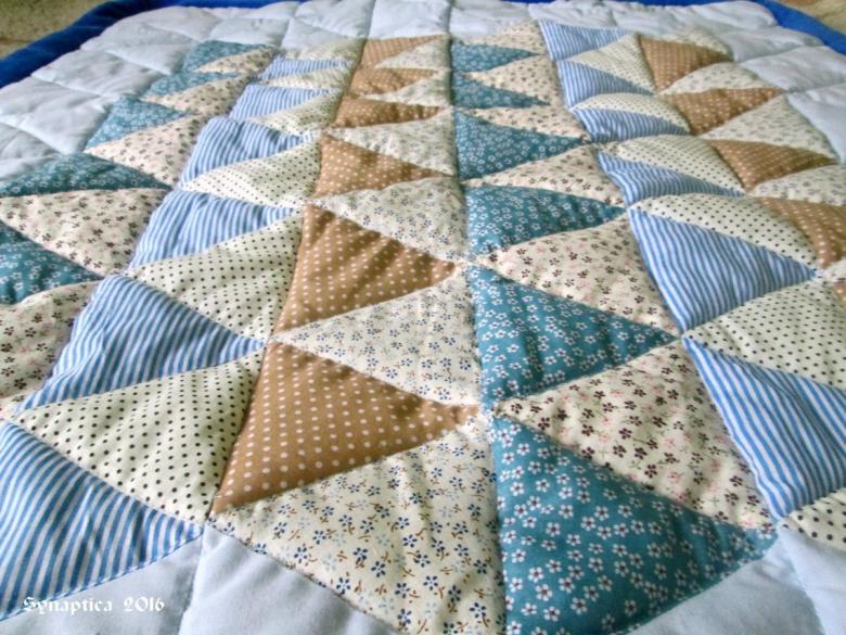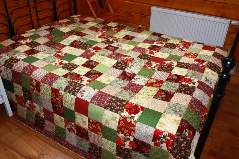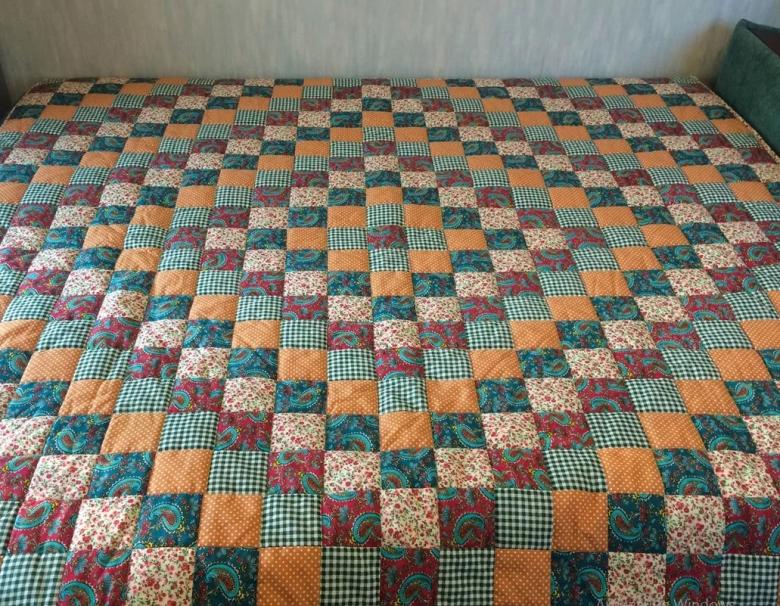On prend une couverture toute prête sur laquelle sont cousus des morceaux de tissu similaire.