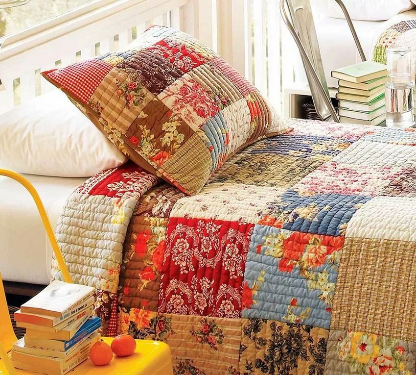 - Patchwork. On prend des chutes ou des morceaux de tissus de différentes tailles.