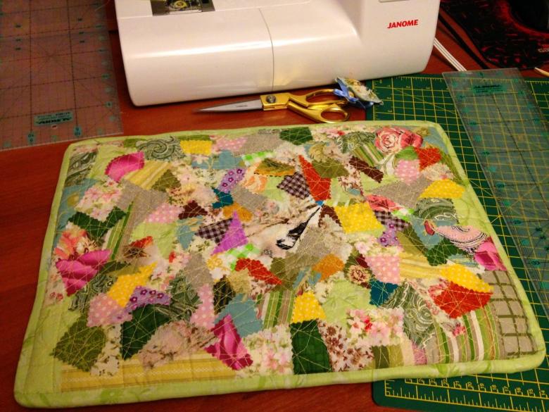 - Appliqué. Prenez une base comme doublure et habillez-la avec des chutes.