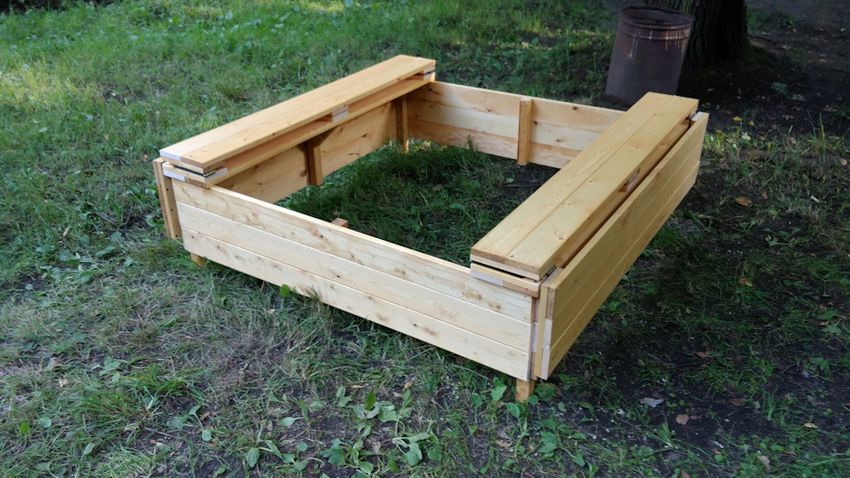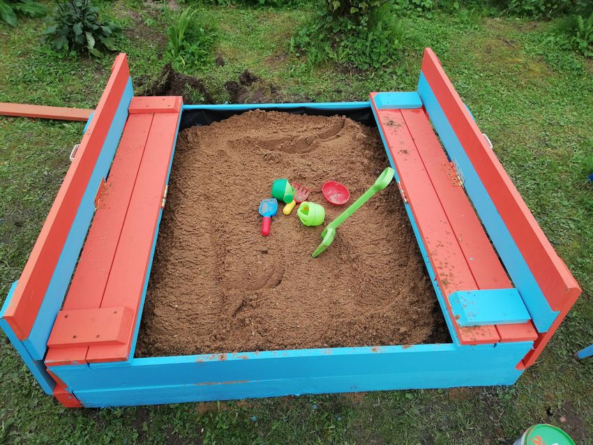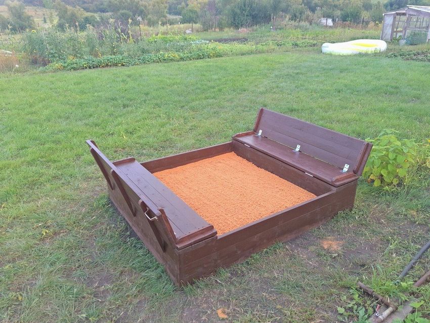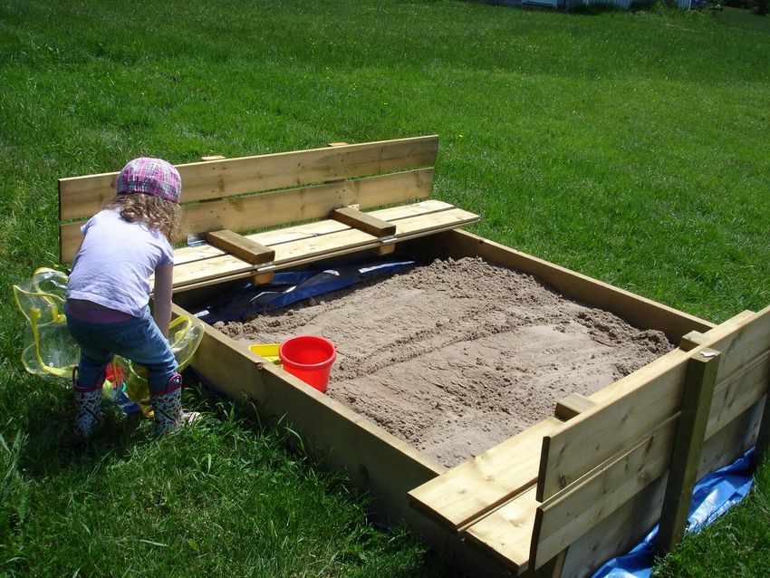 - Le bac à sable doit toujours être équipé d'un couvercle avec une serrure pour empêcher les animaux et les insectes d'avoir accès au sable. Les larves, les débris et les œufs des mouches peuvent être une source d'infestations de vers, de maladies fongiques du système respiratoire et de la peau. Un bac à sable avec couvercle peut facilement être fabriqué de vos propres mains, en utilisant des dessins et des modèles prêts à l'emploi.