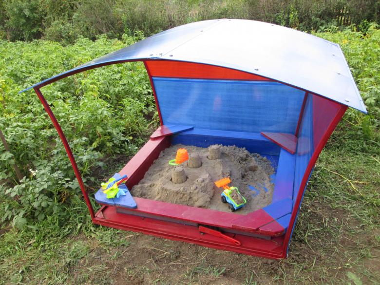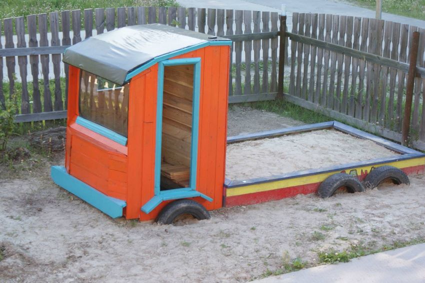 Construire un bac à sable pour enfants de ses propres mains est facile. Il suffit de savoir utiliser un rabot et une scie sauteuse (pour les structures en bois) ou une soudeuse et une meuleuse d'angle pour les constructions métalliques. La forme du bac à sable peut aller d'un camion d'enfant à un champignon avec un chapeau.