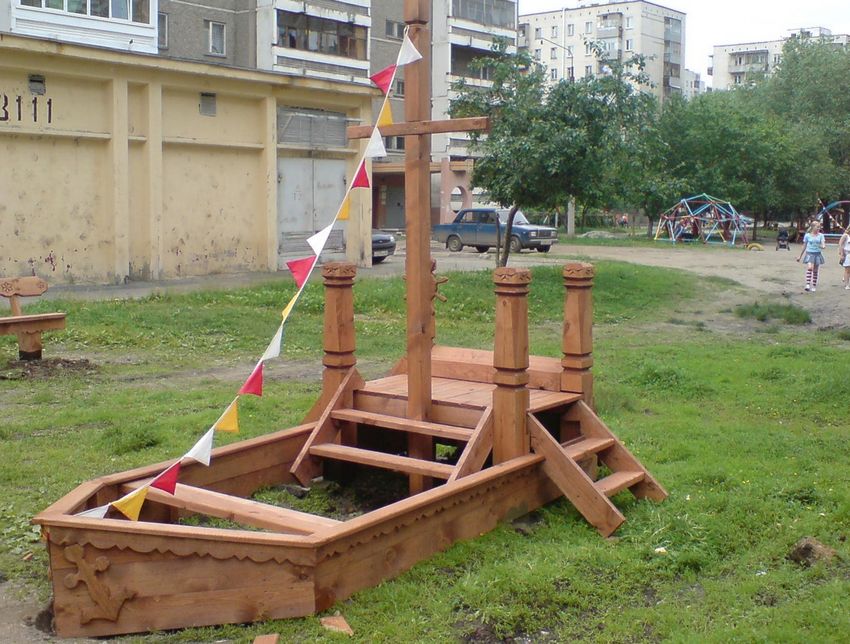 Le choix de la forme dépend entièrement de l'habileté de l'artisan, du degré d'habileté avec les outils (scie sauteuse, rabot) et, bien sûr, de la capacité créative à peindre la surface. En plus de la forme carrée classique, le bac à sable peut être présenté dans les variantes suivantes :