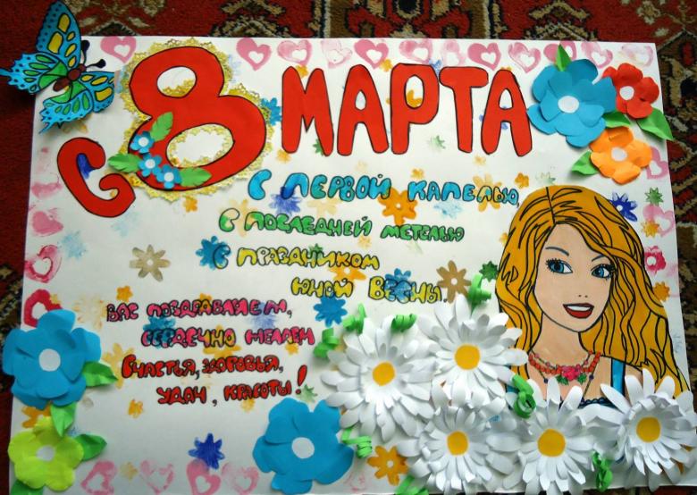 Les jeunes enfants aiment dessiner le portrait de leur mère sur une grande feuille de papier, qu'elle conserve ensuite pendant de nombreuses années. Une affiche faite à la main pour le 8 mars est le meilleur cadeau pour toute maman.