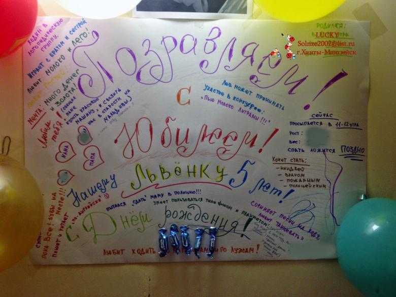 Dernièrement, les affiches ont gagné en popularité. Une affiche est similaire à une carte de vœux, mais elle est réalisée sur de grandes feuilles de papier ou de wattman. Vous pouvez y dessiner de grandes images, écrire de nombreuses salutations, faire des applications et trouver de la place pour des cadeaux sucrés.