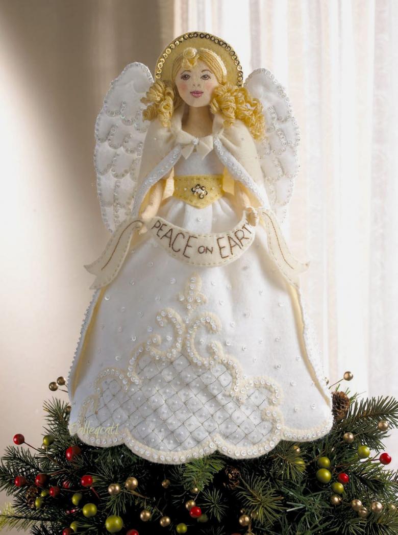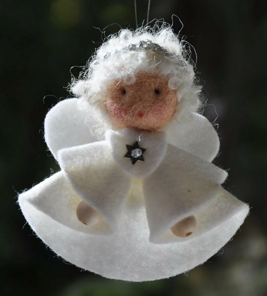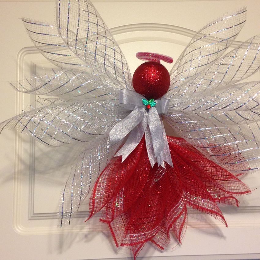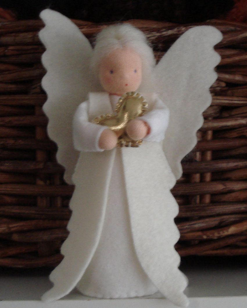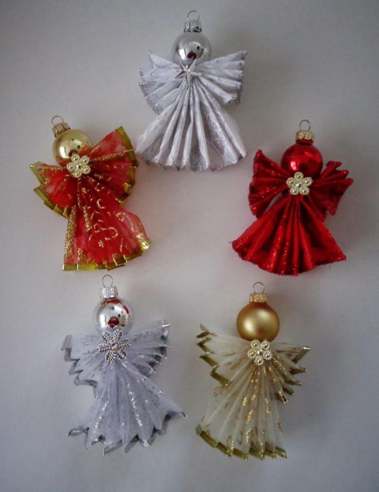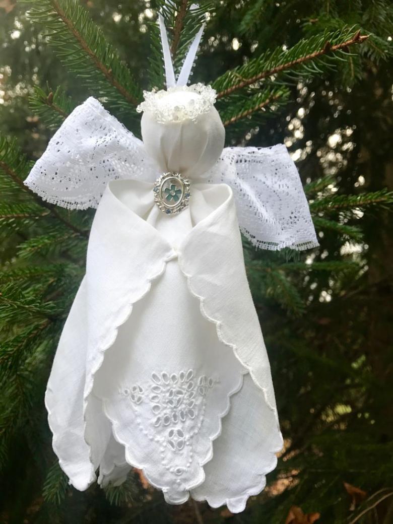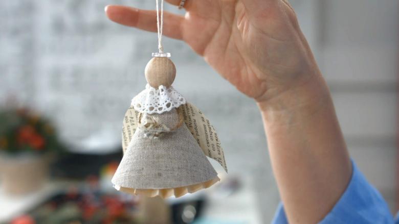 - Les restes de tissu ou d'autres pièces de tissu sont utilisés pour créer les ailes d'un ange, un vêtement sous forme de jupe ou de robe longue au choix de l'auteur. Une bande de fil d'argent est ajoutée pour couvrir le point de fixation inesthétique. Un halo de tissu argenté est ajouté à la tête.