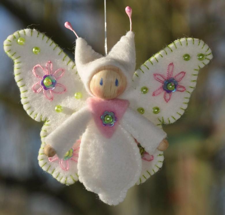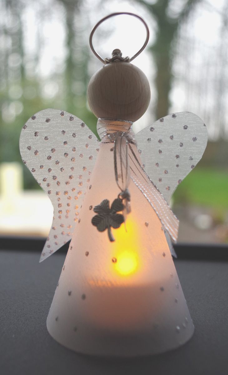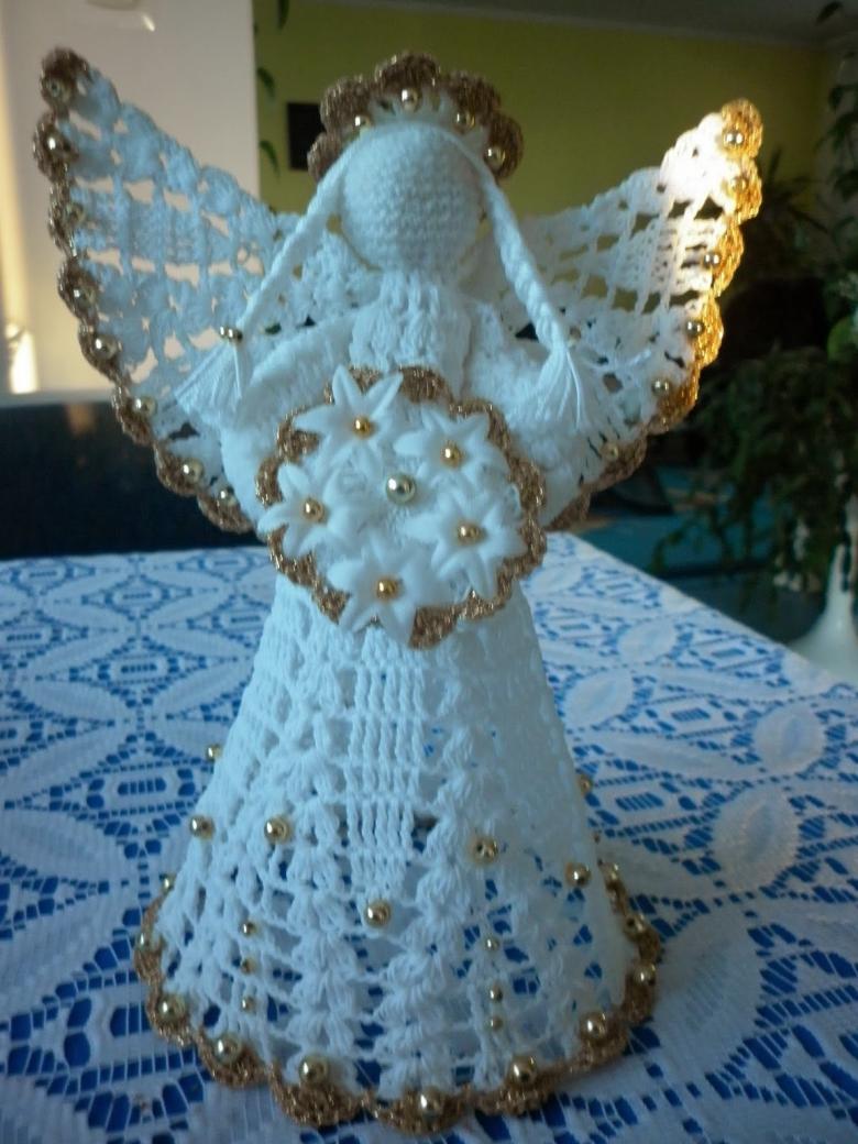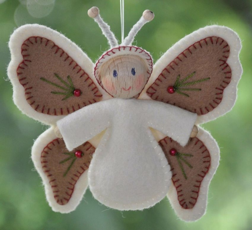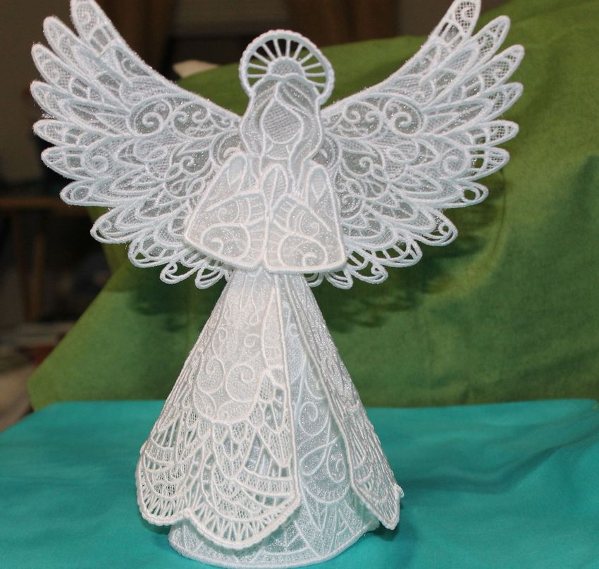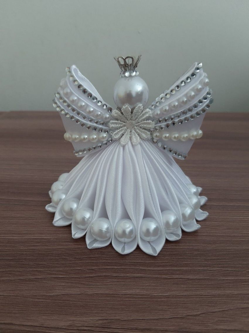 - Les restes de tissu ou d'autres pièces de tissu sont utilisés pour créer les ailes d'un ange, un vêtement sous forme de jupe ou de robe longue au choix de l'auteur. Une bande de fil d'argent est ajoutée pour couvrir le point de fixation inesthétique. Un halo de tissu argenté est ajouté à la tête.