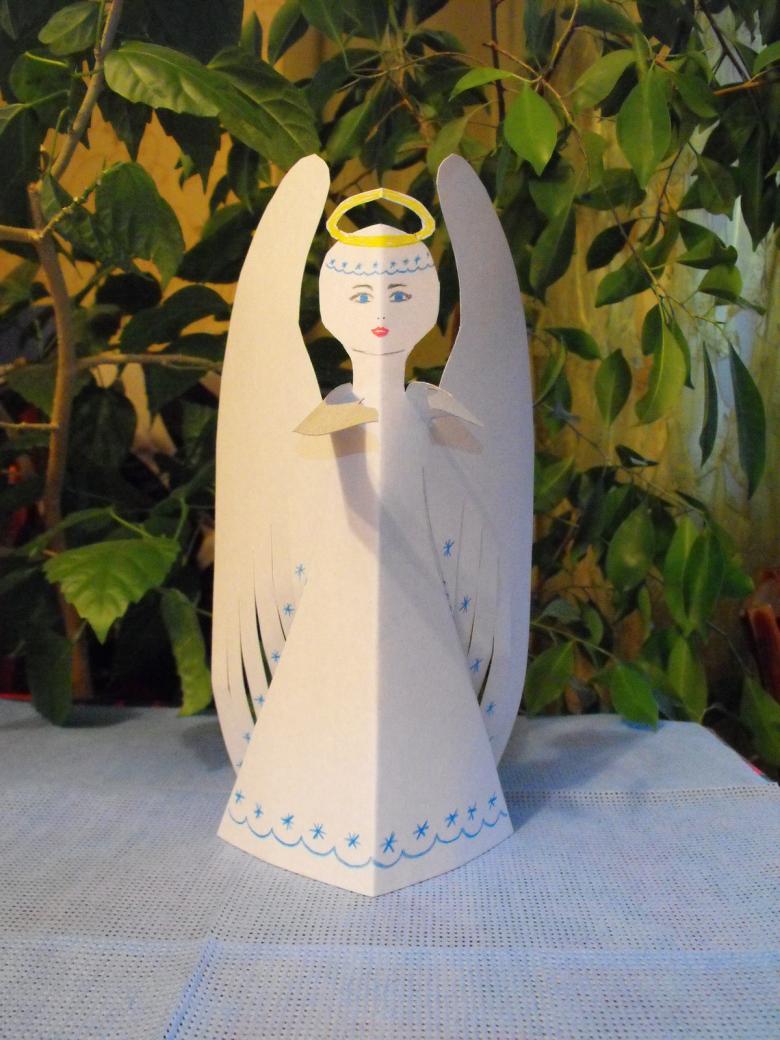 Grâce au matériel facile et abordable, le modèle d'ange peut être placé sur la fenêtre du jardin d'enfants, de l'école, ou décorer une résidence personnelle pendant la période des vacances. Pour cela, vous n'aurez pas à faire beaucoup d'efforts.