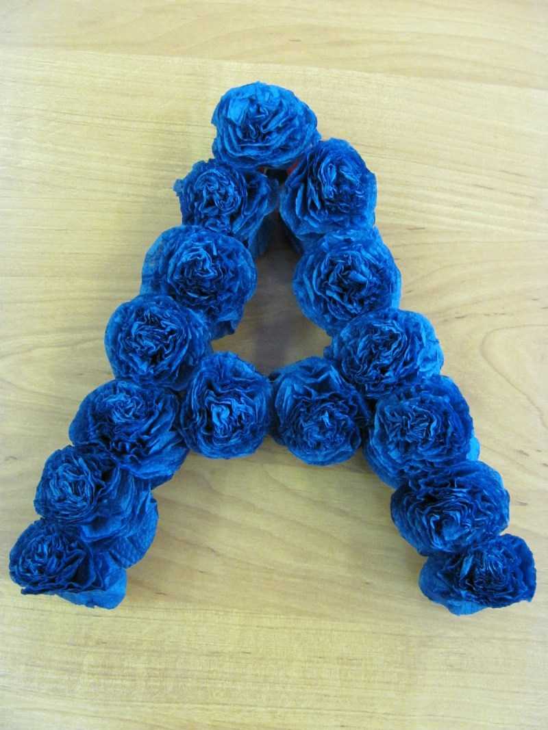 Lorsque toutes les roses sont collées en place, le travail est prêt. Un bricolage similaire peut être réalisé avec les parents pour le jardin d'enfants en se basant sur la première lettre du nom de l'enfant.
