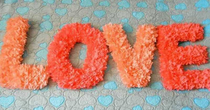 Lettre faite de carton et de serviettes de table