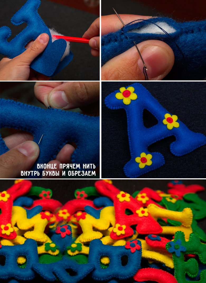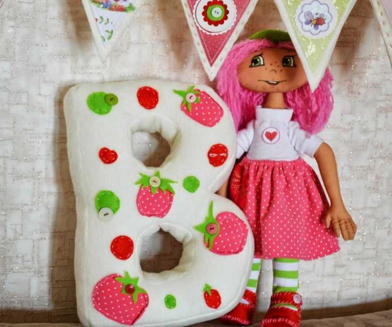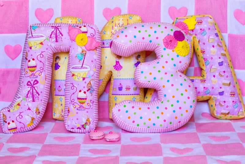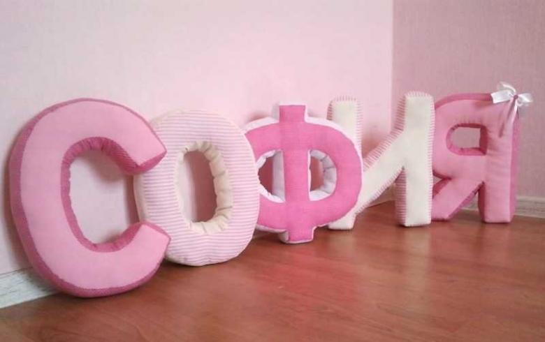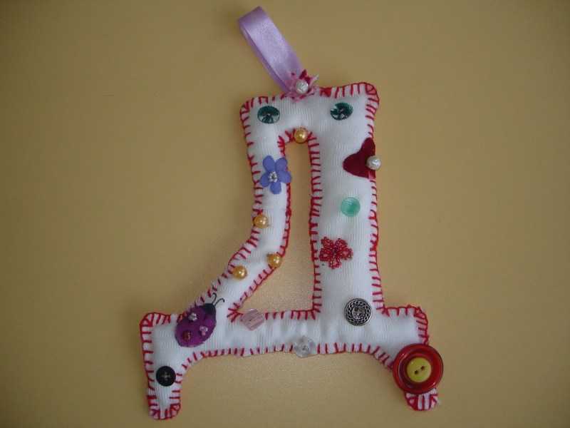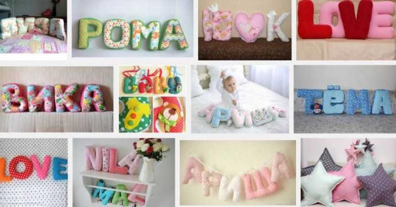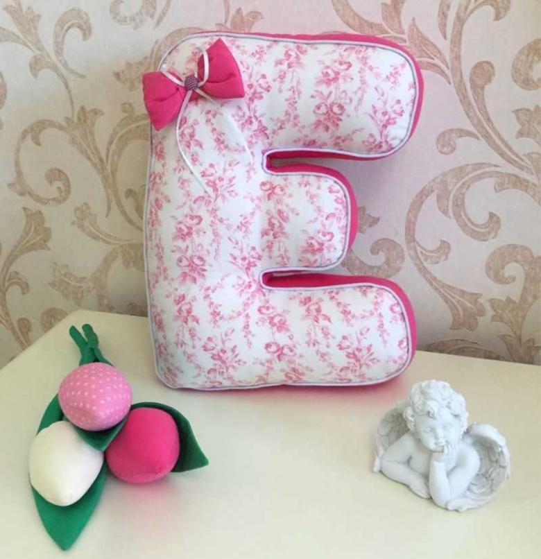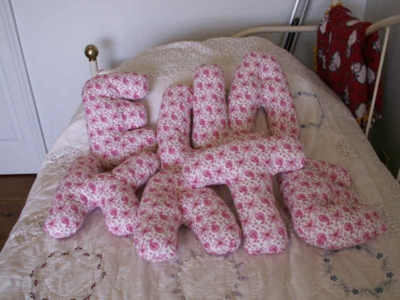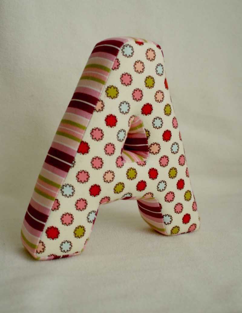 Il est facile de fabriquer une lettre-coussin. Reportez le gabarit sur le tissu, puis découpez le tissu en laissant 1,5 cm pour les coutures, cousez à la machine et rembourrez avec du molleton. Cousez le reste de la zone à la main.