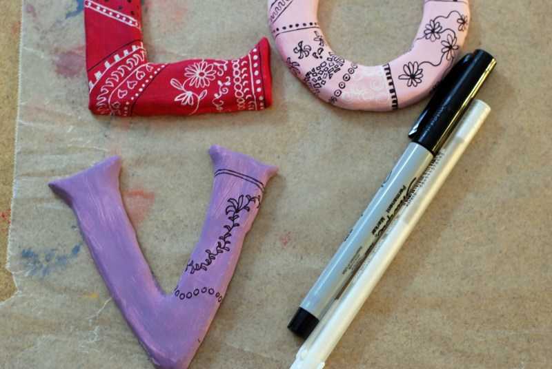 Les lettres peuvent être décorées avec des peintures de couleur, des feutres ou des crayons :