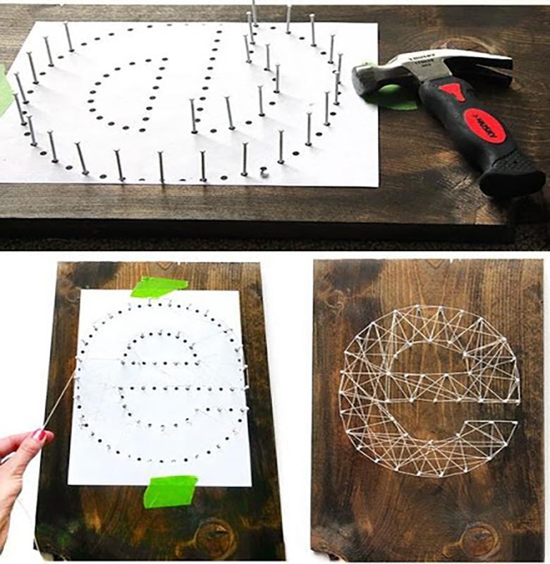 - Dessinez le contour de la lettre et enfoncez de petits clous le long du bord.