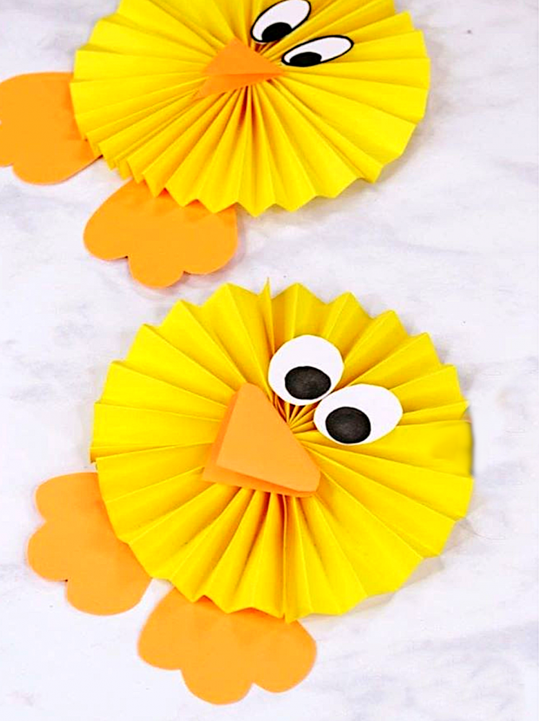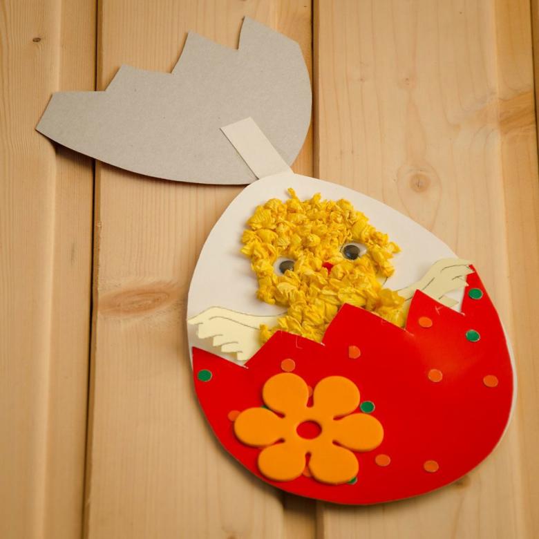 Vous pouvez créer un joyeux poussin à partir de n'importe quel tissu. La première source de créativité des enfants est le papier, qui varie en termes de texture, de couleur et d'aspect.