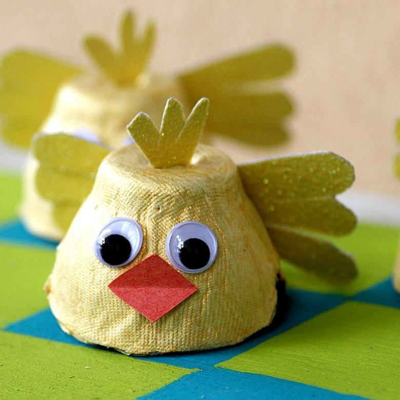 Cette fête, comme aucune autre, nécessite une certaine quantité d'œufs. Pas besoin de les jeter quand vous les achetez. Les cartons d'œufs font d'excellents bricolages - les poulets rigolos.